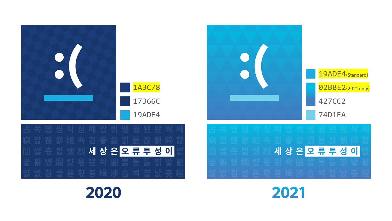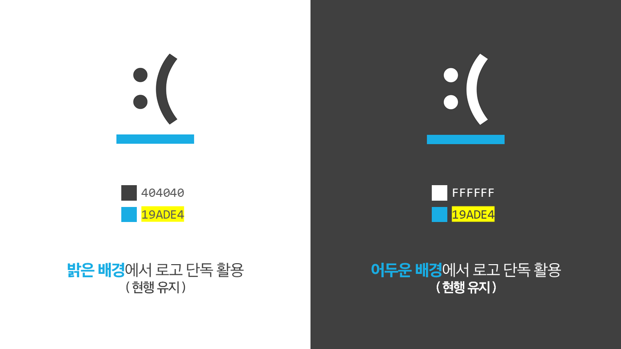 | 로고색 (밝은 배경) | 로고색 (어두운 배경) | 상징색(밑줄 무늬) |