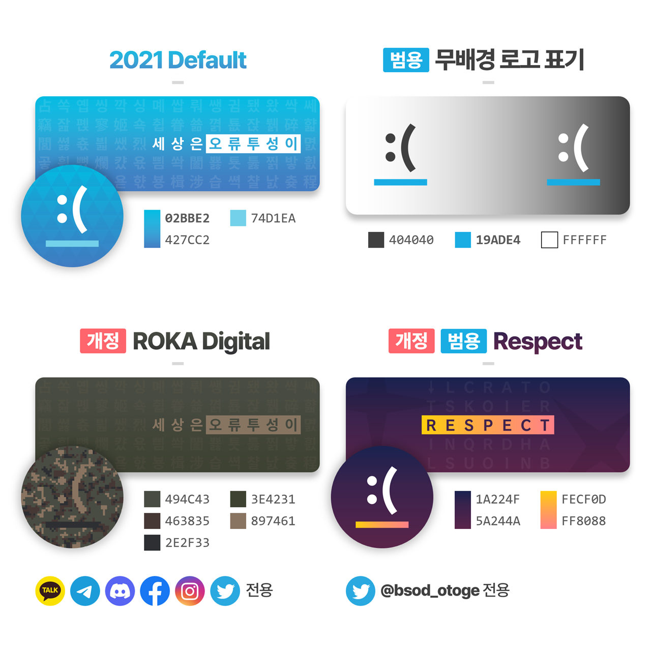 | 배경색 | 배경 대표색 | 로고색 | 상징색(밑줄 무늬) |