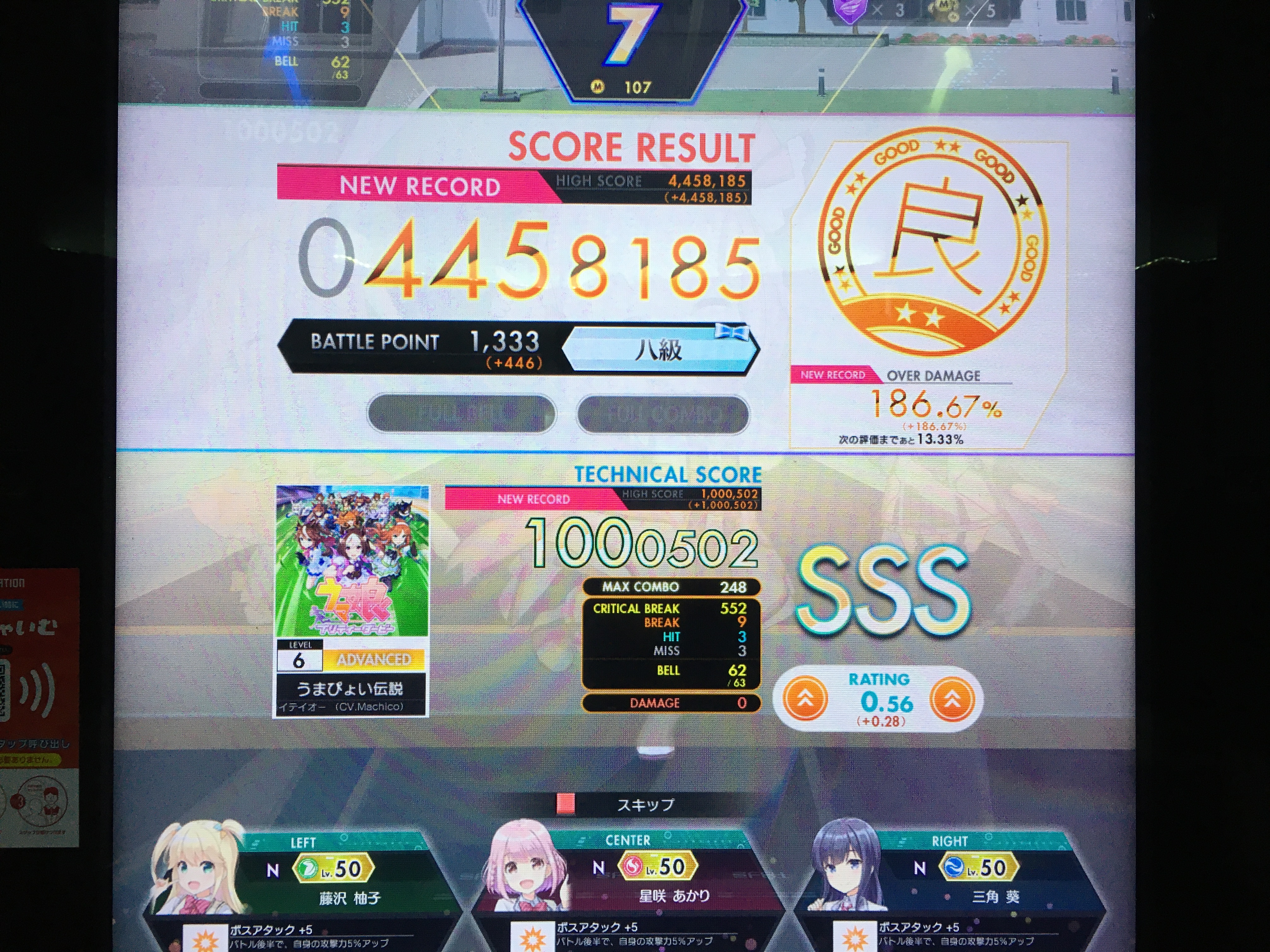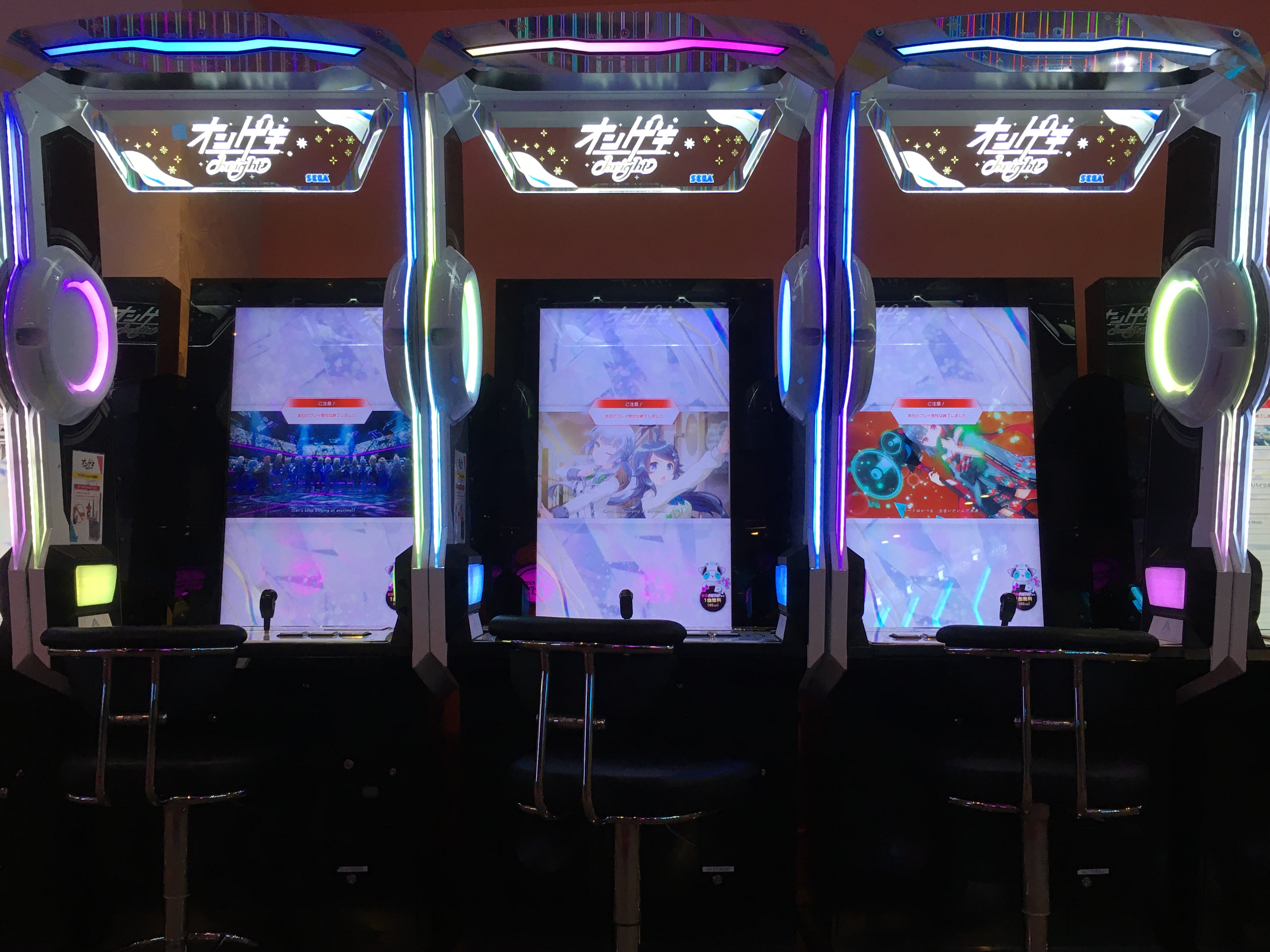 세가의 3대 리듬게임인 온게키·츄니즘·마이마이 중에서 유독 한국에 아직 정식 출시되지 않은 게임인 '온게키'를 한번 해 봤다. 조작 방식이 생각보다 재미있어서 츄니즘 다음으로 쉽게 빠져들 수 있을 만한 게임이었다. 그런데 최고 판정을 가리키는 명칭이 하필 또 'BREAK'인 게 참 디제이맥스 플레이어 입장에서 뭔가 기분이 살짝 나쁘다. (디제이맥스에서는 노트를 처리하지 못했을 시 최저 판정인 'BREAK'가 나옴)