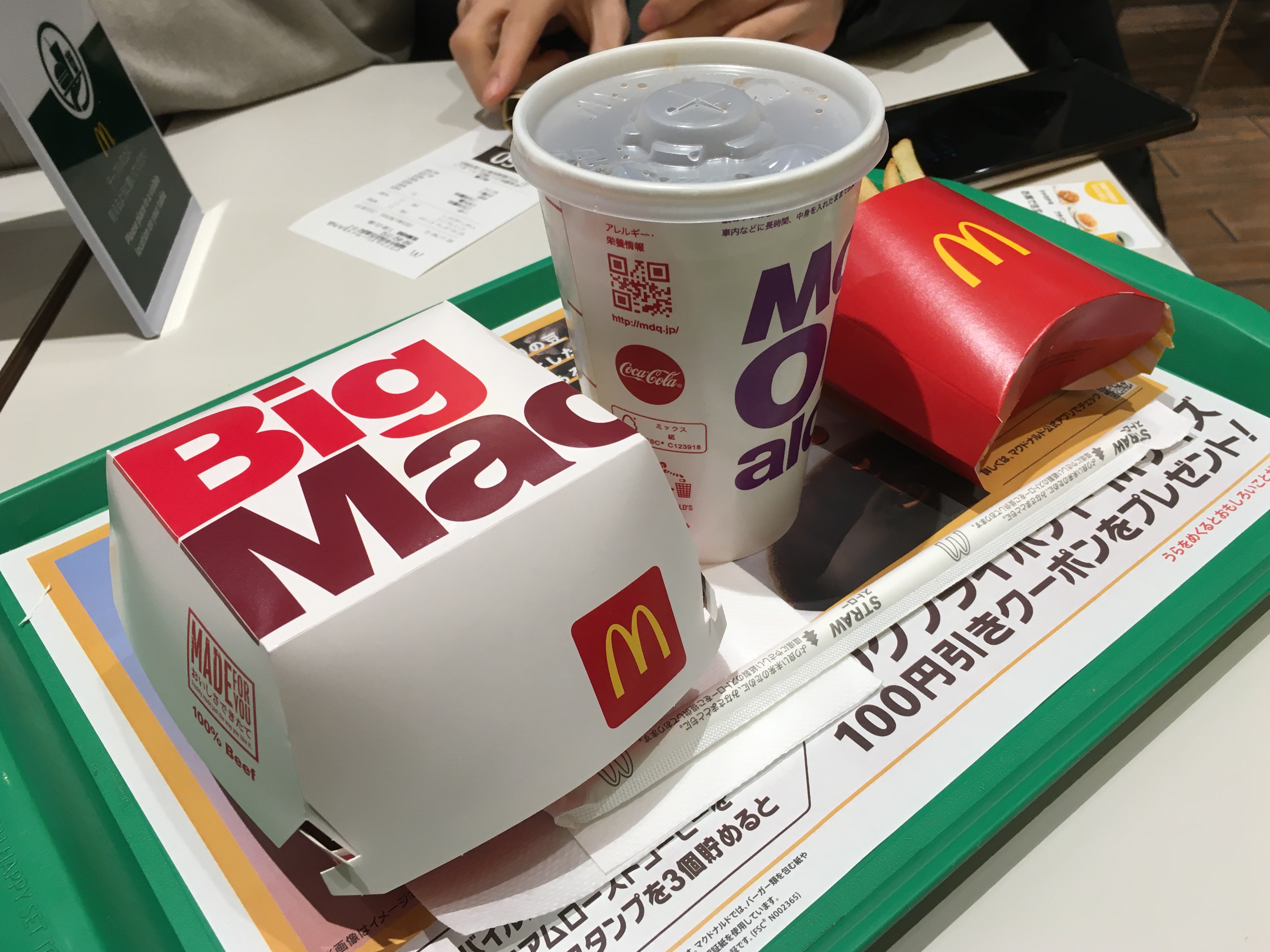 시간이 지나 점원이 자리로 찾아와 주문한 빅맥 세트를 테이블 위에 놓고 갔다. 포장지로 감싸는 포장을 택한 한국 매장과는 다르게 미국 본토의 방식을 준수하여 종이 용기로 포장된 빅맥이 인상적이다.