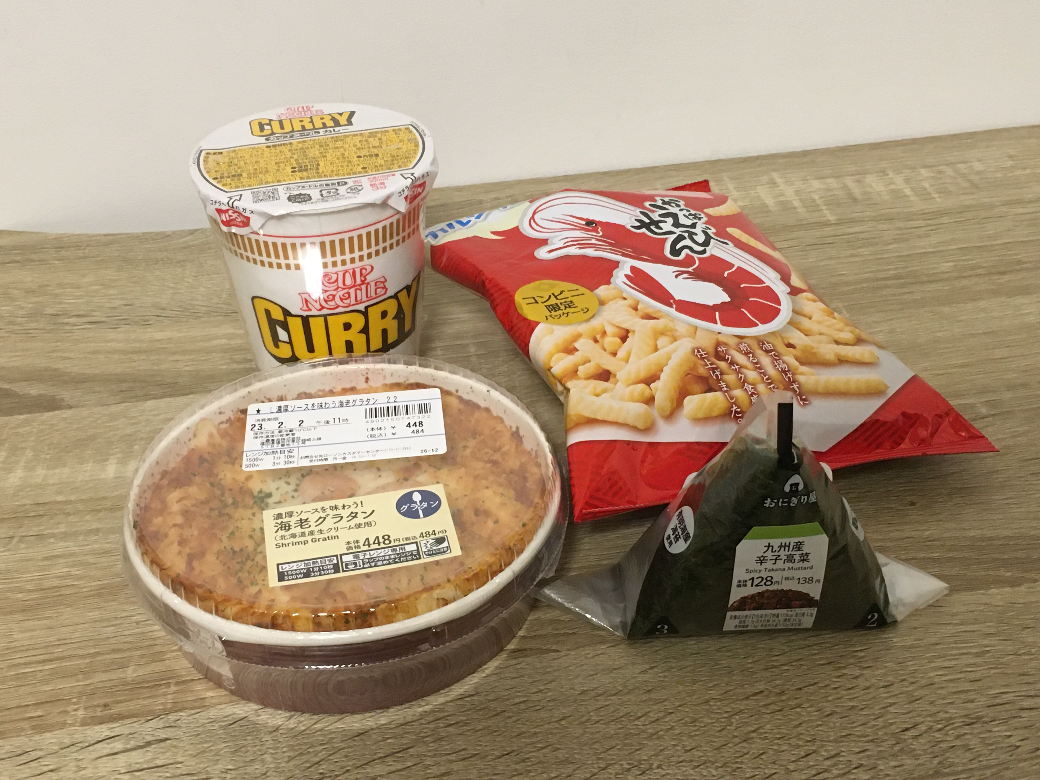 일본은 편의점 문화가 굉장히 잘 발달해 있는 만큼 편의점에서 파는 즉석 조리 식품들도 한국에서 쉽게 볼 수 없는 종들이 많다. 그런 만큼 여기서는 흔히 팔리는 편의점 음식 하나 먹는 것도 귀중한 식문화 체험이겠다, 후쿠오카 타워를 다녀온 후 숙소로 돌아가기 전에 편의점에 들러서 야식으로 먹을 것들을 조금 샀다.
