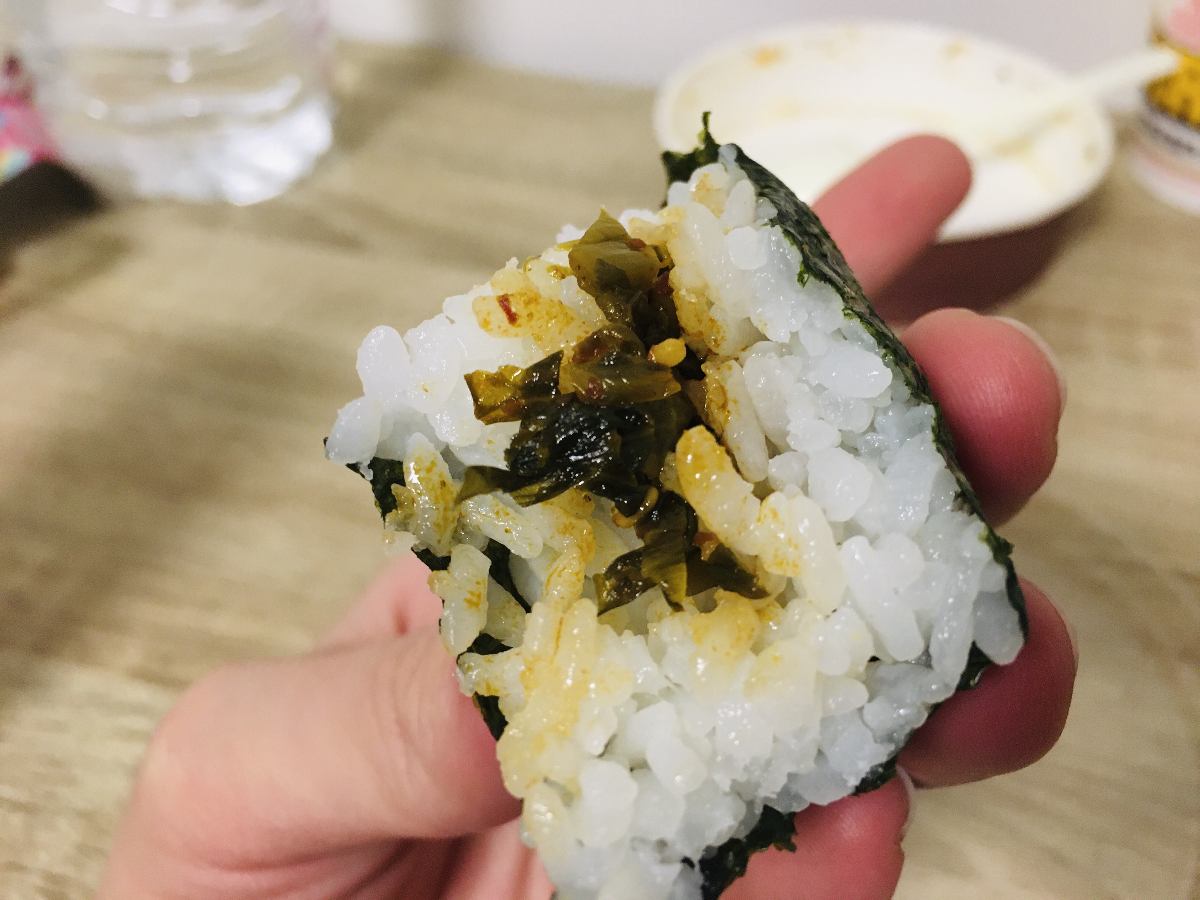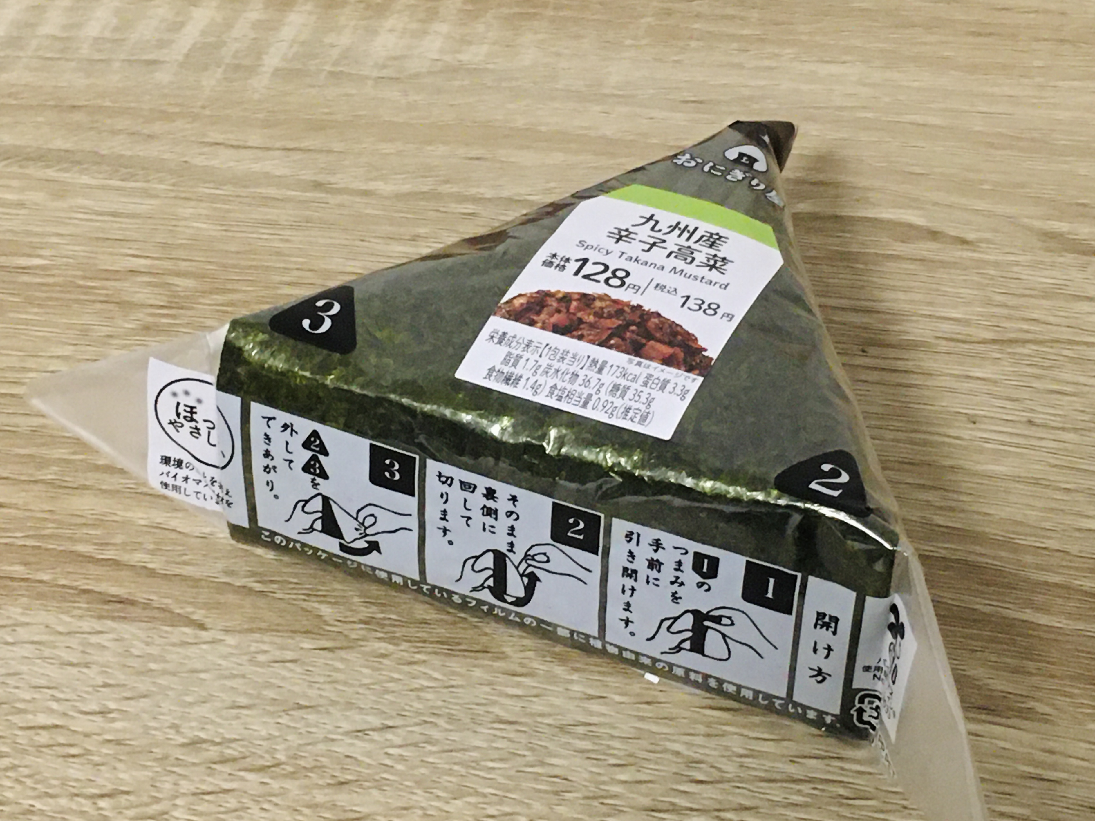 삼각김밥 중에서도 은근히 '매운맛'이 강조되어 있어 눈길이 갔던 규슈산 갓장아찌가 들어간 삼각김밥이다.