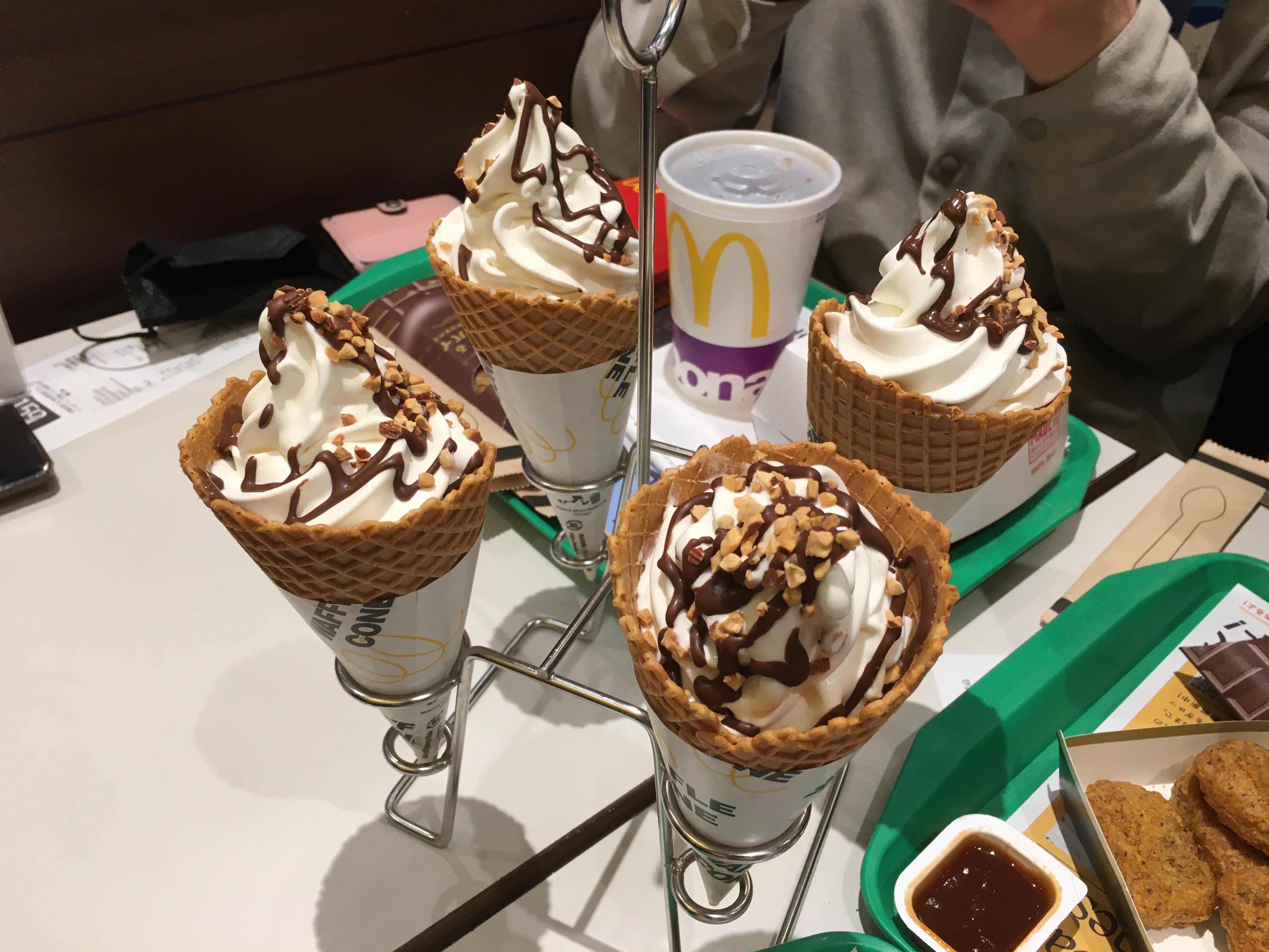 빅맥 세트와 같이 먹었던 와플콘. 한국과 다르게 아이스크림이 콘에 얹혀진 것이 아니라 담겨져 있는 듯한 구조로 되어 있어 손에 들고 먹을 때 크림이 녹아 손에 떨어질 걱정을 크게 덜고 먹을 수 있는 게 장점이다.
