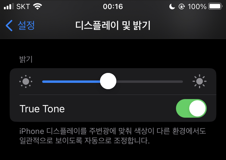 아이폰 8부터 탑재되었고 아이폰 6s에는 없었던 트루 톤 디스플레이가 내장되어 있다. 주변광의 변화에 따라 디스플레이의 색온도가 시시각각으로 변하는 모습을 볼 수 있다.