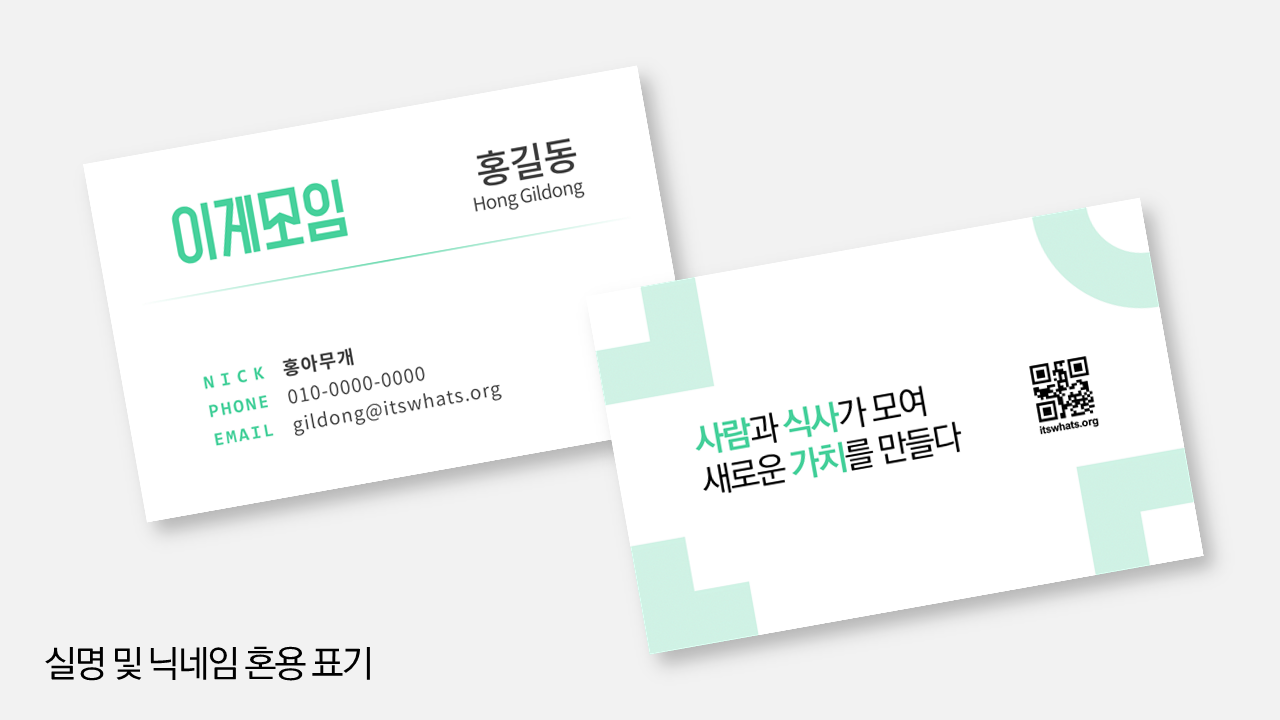 커버 이미지와 명함의 뒷면 배경에 쓰이는 배경 무늬에는 각각의 모서리에 있는 4개의 도형들이 서로 어우러져 '모임'이라는 글자 모양의 일부분을 이룬다.