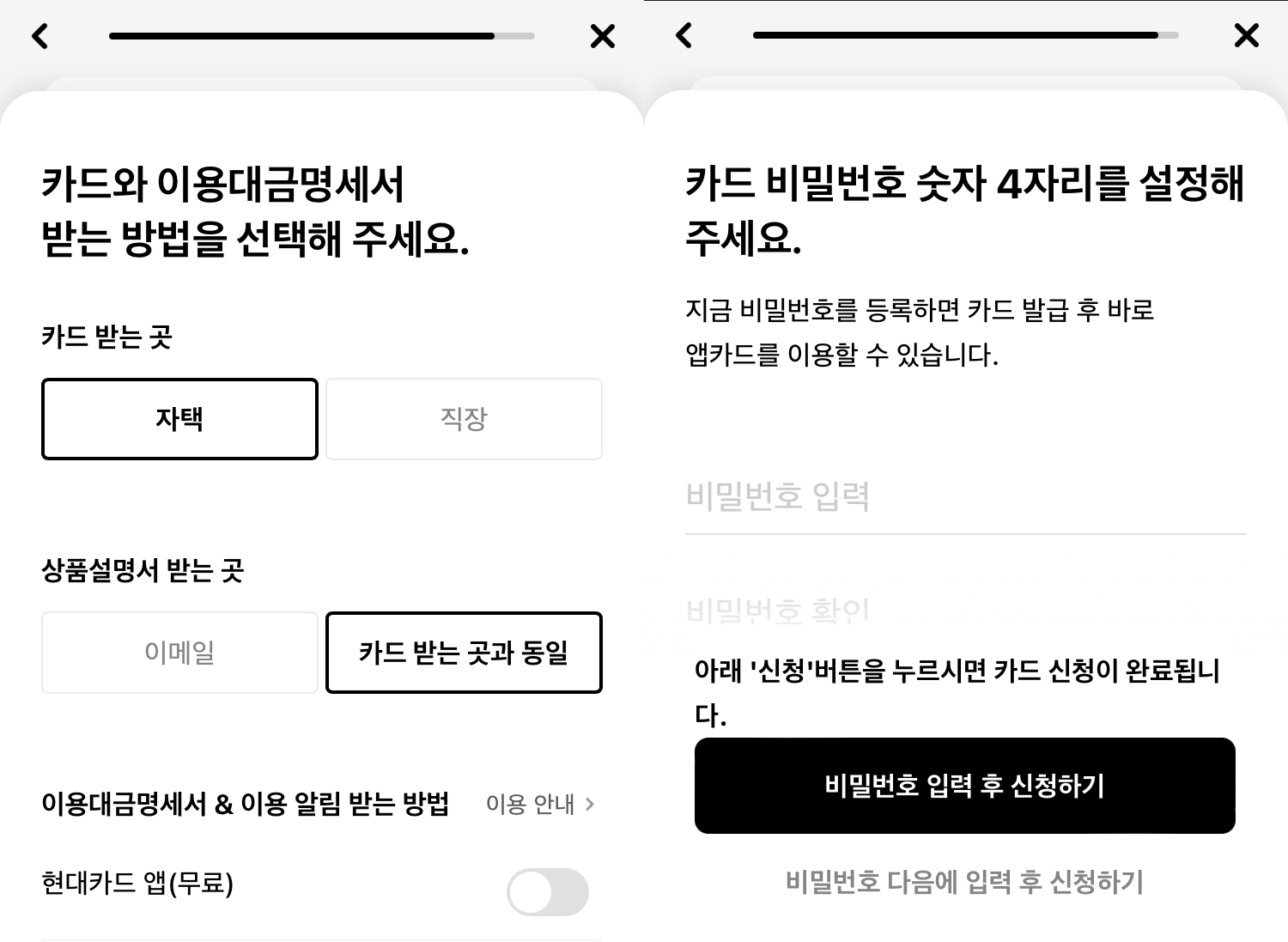 10. 카드 배송 방법 결정 후 카드 비밀번호 설정