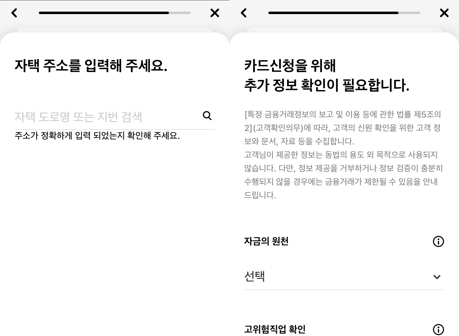 9. 자택 주소 입력 후 금융거래 관련 추가 정보 확인