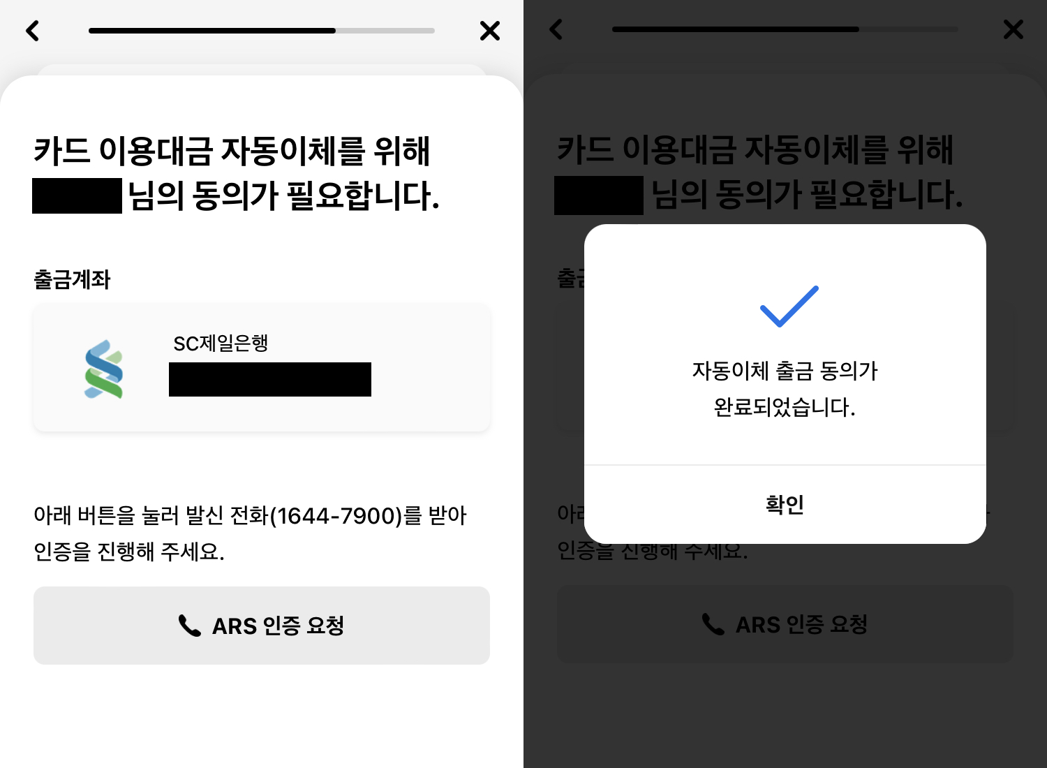 8. 계좌 자동이체 출금 동의를 위한 ARS 인증