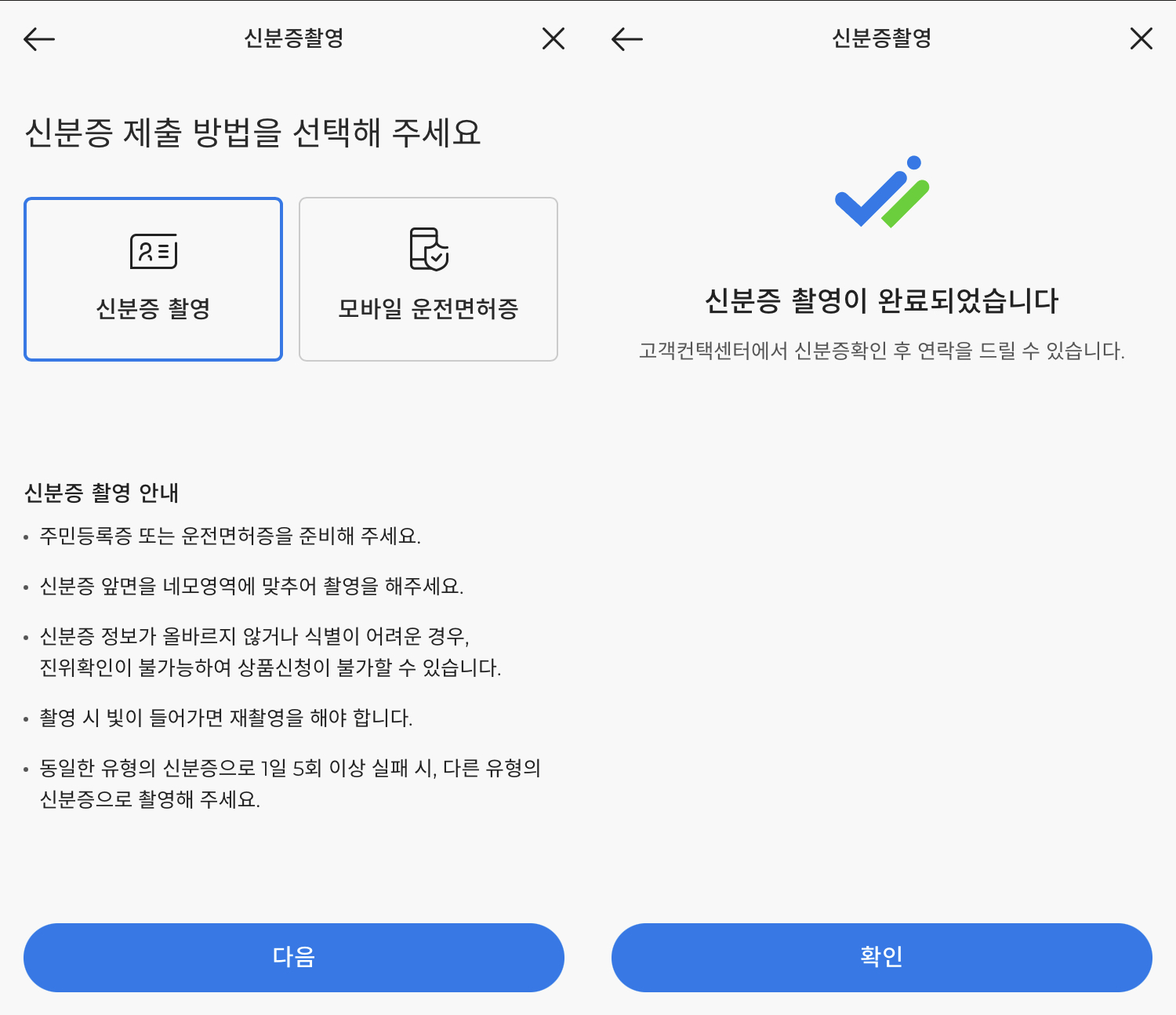 5. 약관 동의 후 신분증 촬영을 통한 추가 본인인증