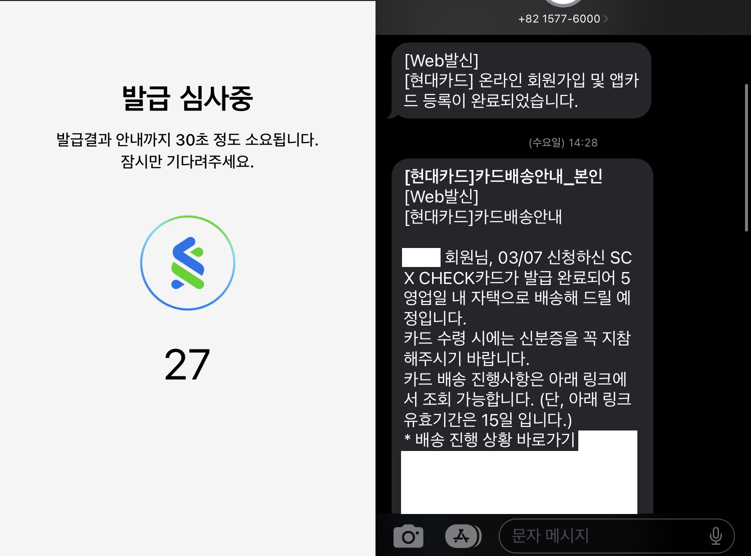 11. 발급 심사 후 SMS로 심사 결과 안내 (카드배송안내가 오면 심사 통과)