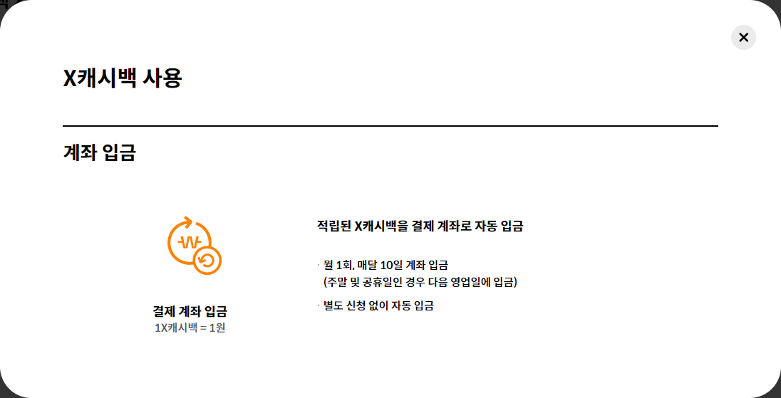 X캐시백 적립 체크카드