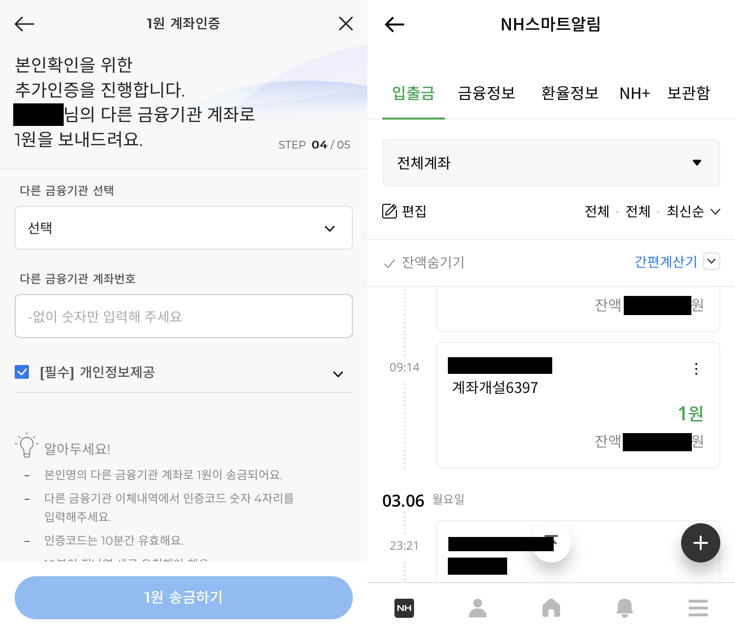 6. 타 금융기관 계좌 인증을 통한 추가 본인인증 절차