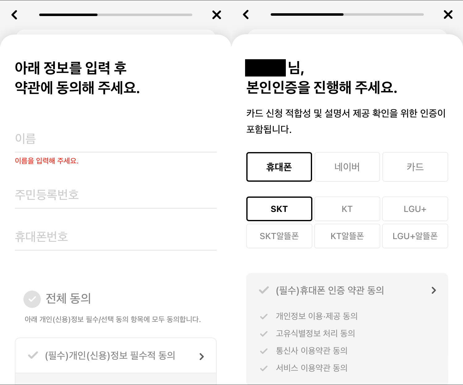 4. 기본 개인정보 입력 및 본인인증