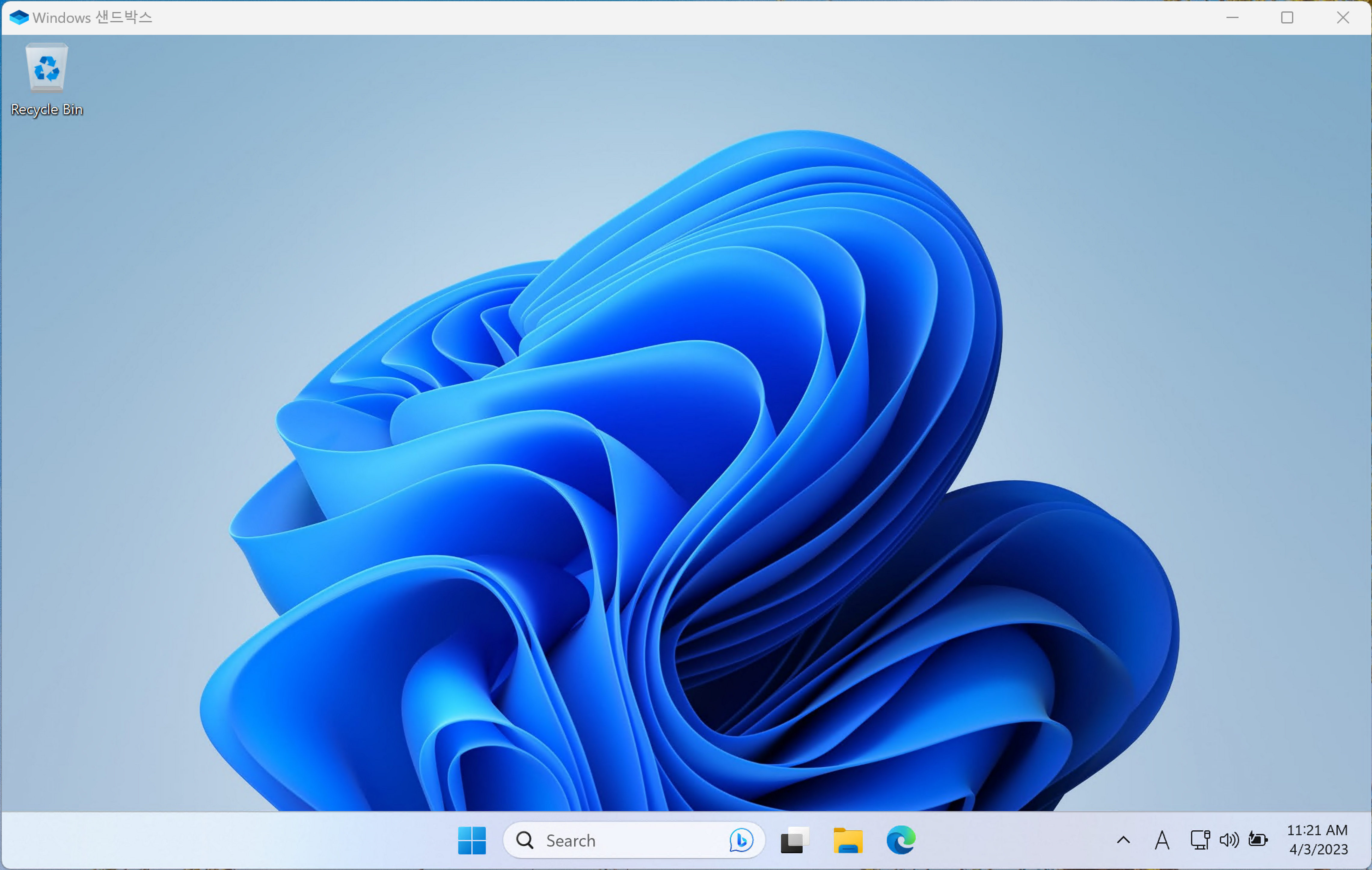 5. 'Windows Sandbox'를 실행하면 사진과 같은 모양새의 창이 나온다. 창 속에 나오는 가상 윈도우 환경을 보통의 윈도우를 사용하듯이 조작할 수 있다.