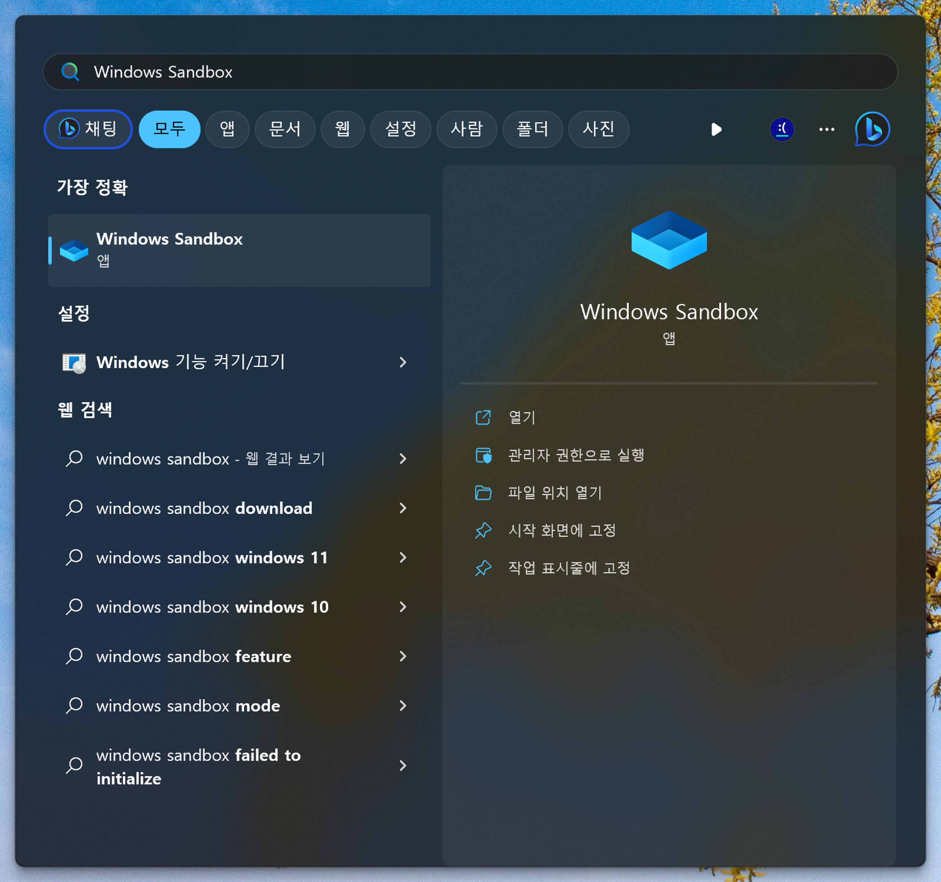 4. PC를 다시 시작한 뒤 프로그램 목록에서 'Windows Sandbox' 확인 가능