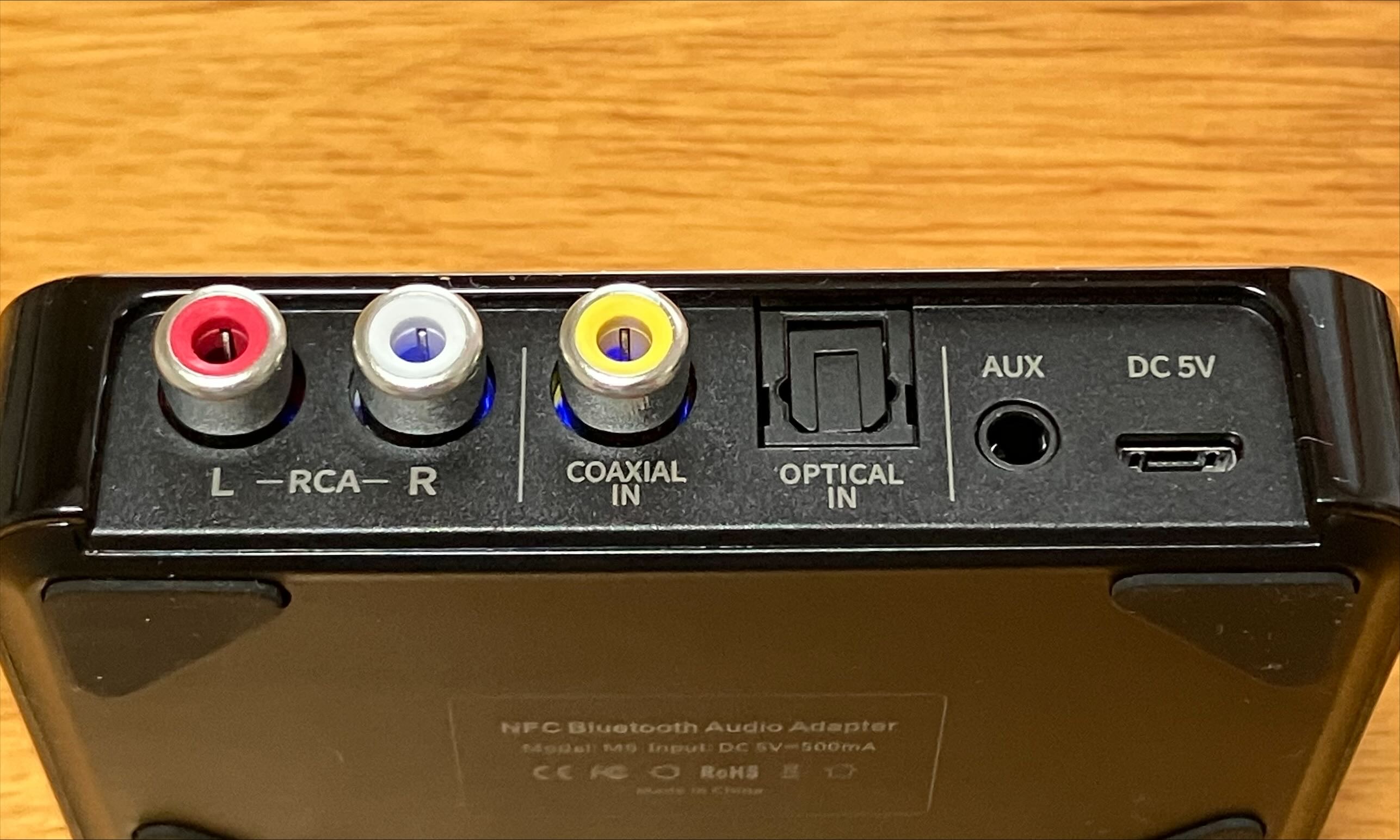 그것은 바로 RCA, 동축, 옵티컬, AUX 단자와 블루투스 송수신, FM 송신 모듈이 한데 모여 있는 동시에, 화룡점정으로 블루투스 페어링용 NFC 태그까지 박혀 있는 이른바 ‘블루투스 오디오 어댑터’ 겸 ‘FM 트랜스미터’ 되시겠다.