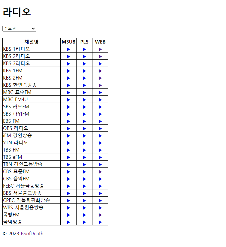 이러다가 결국 못 참겠다 싶어서 나의 얄팍한 개발 지식을 총동원하여, 개발 공부도 할 겸 여러 방송사들의 인터넷 라디오 서비스에 사용되는 스트리밍 URL들을 '하나의 웹페이지' 안에 정리해 보는 토이 프로젝트를 벌려 보기로 했다.