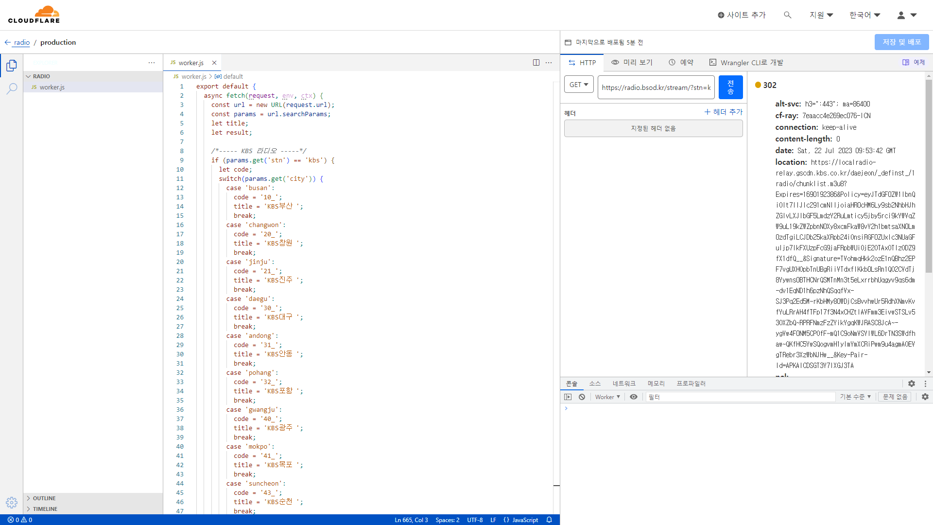 - M3U8 파일로 제공: Request URL의 pathname이 '/stream/'인 경우 작동한다. result 변수에 담긴 값(URL)으로 리다이렉트를 시전한다.