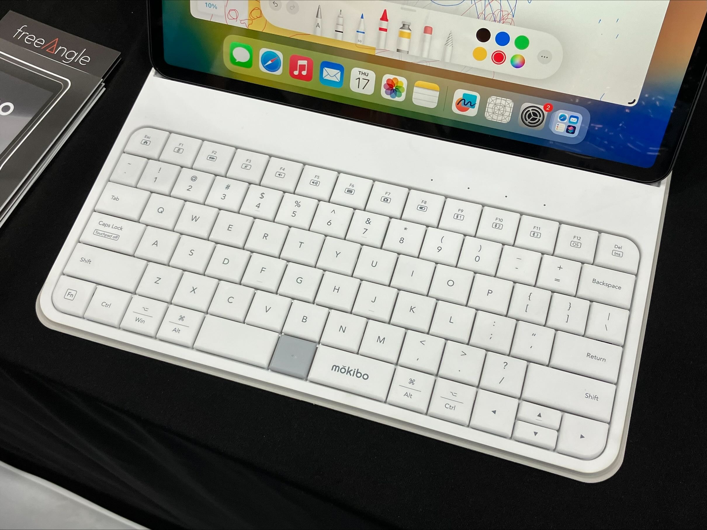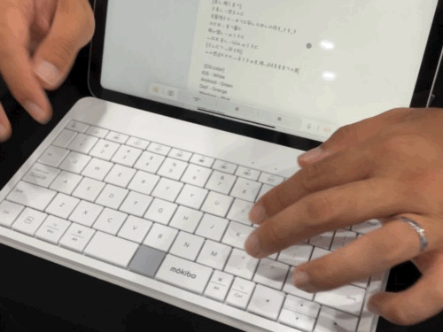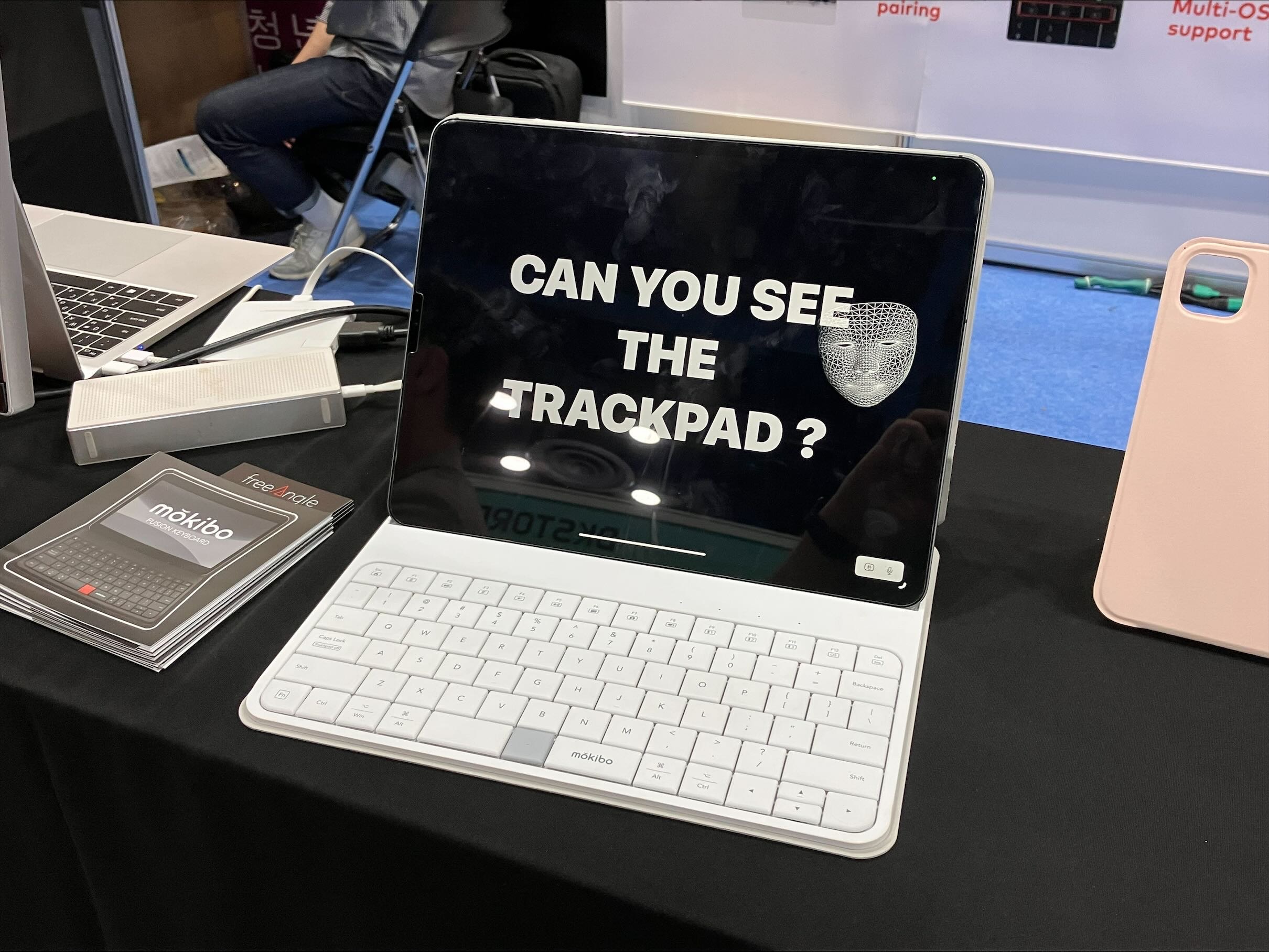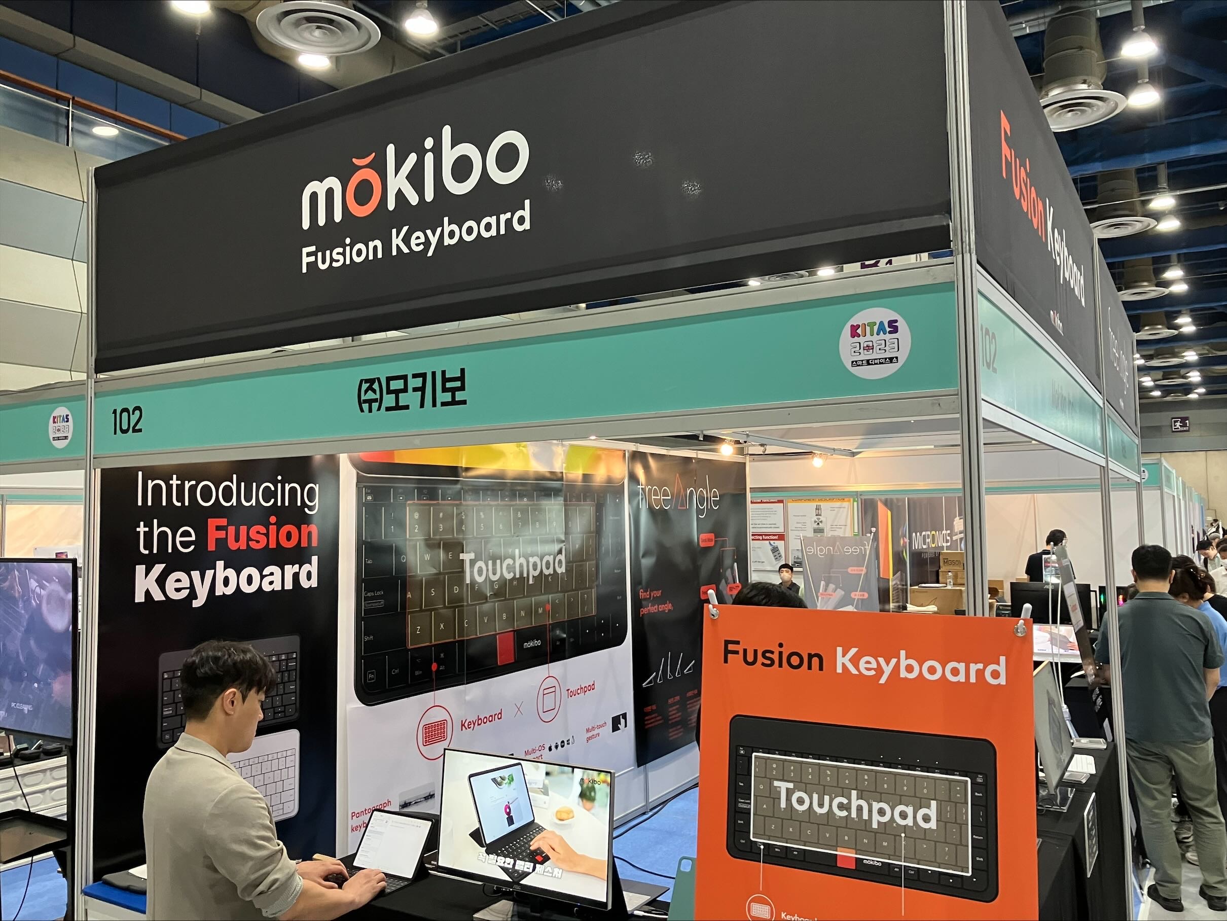 모키보라는 업체의 부스에서는 '퓨전 키보드'라는 제품을 체험해 볼 수 있었다. 이 제품은 키보드와 터치패드를 한 자리에서 사용할 수 있도록 고안된 하이브리드 키보드다.