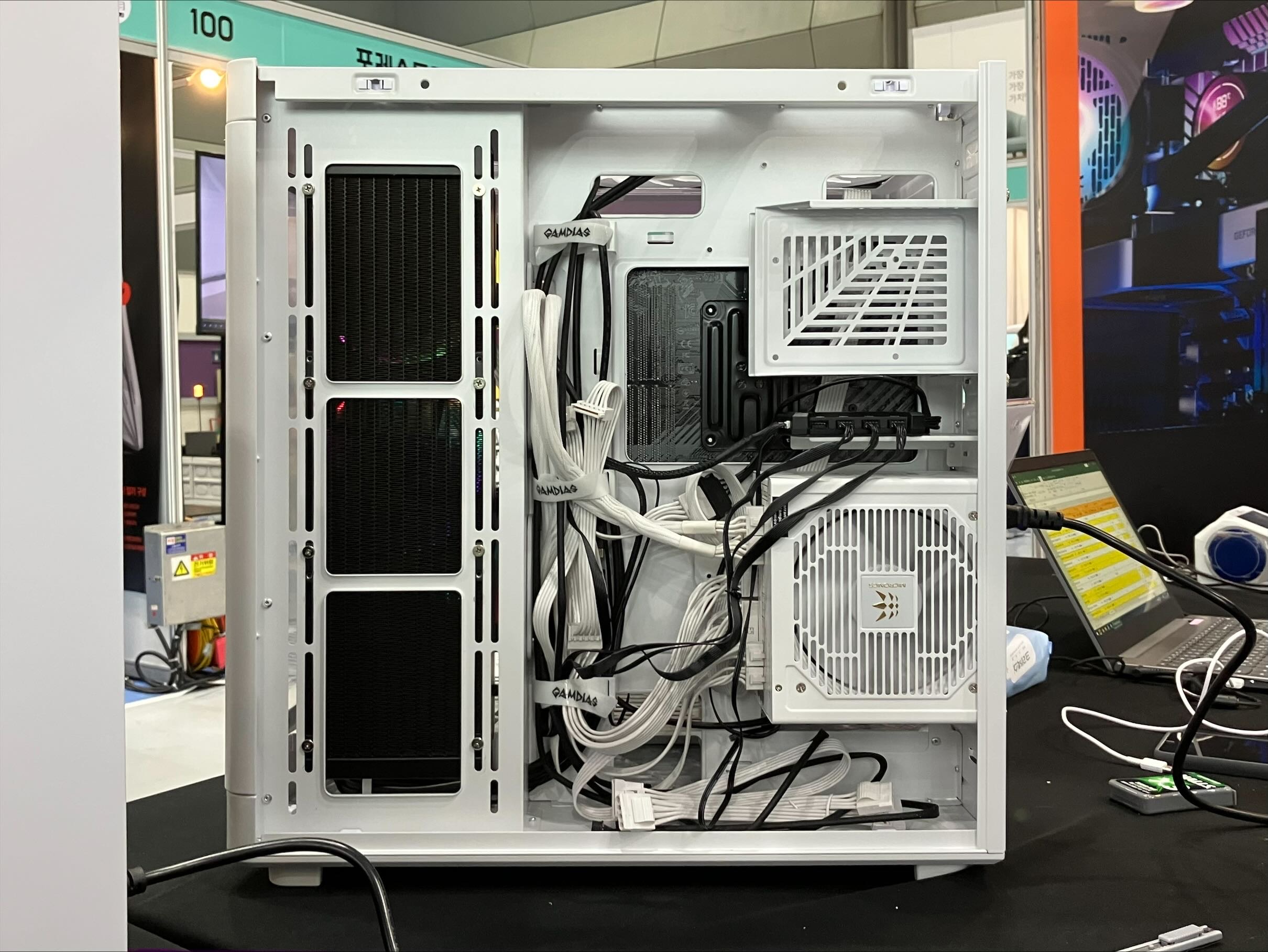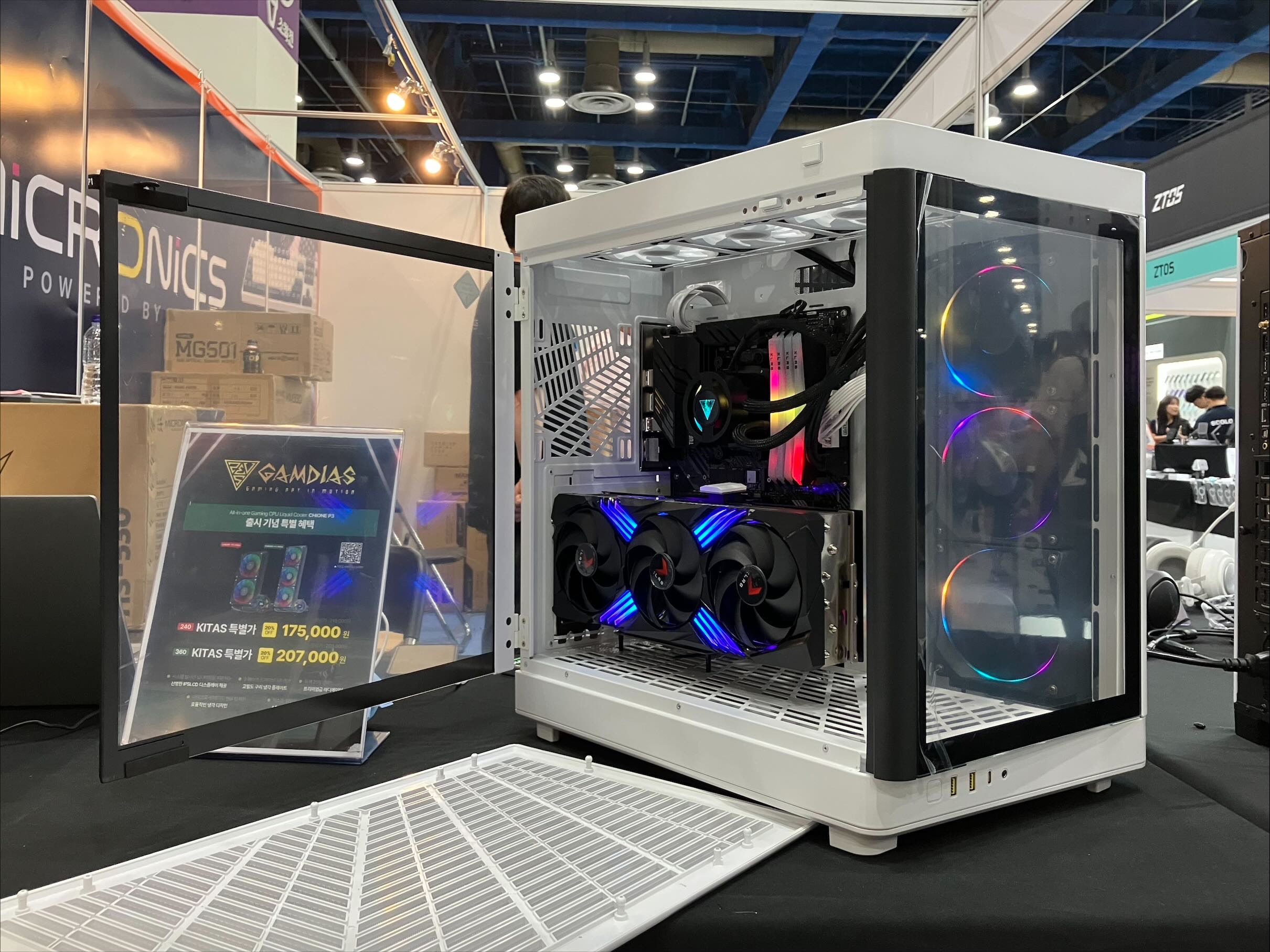 PC 조립에 관심이 있는 사람이라면 한 번쯤 들어봤을 만한 업체인 한미마이크로닉스. 이곳의 부스에서는 다름아닌 육중한 크기의 풀타워 PC 케이스가 이목을 크게 끌었는데, 바로 겜디아스 브랜드의 '네소 P1' 시리즈이다.