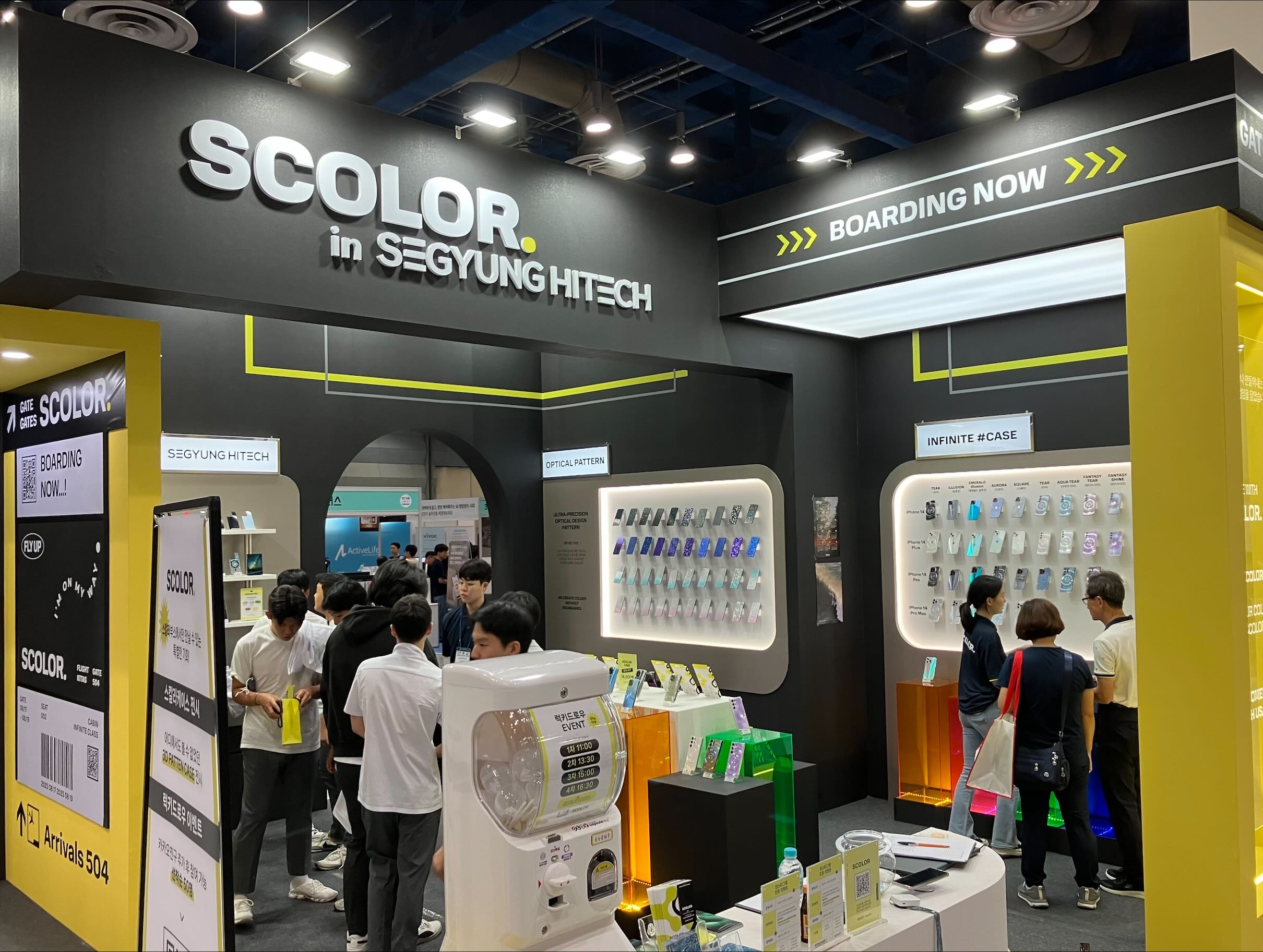 다른 부스들에 비해 성대한 규모로 차려진 편인 스칼라케이스 부스. 투명한 프레임에 다양한 3D 패턴이 적용되어 있는 일명 '홀로그램 케이스'는 이곳의 주력 상품이다.