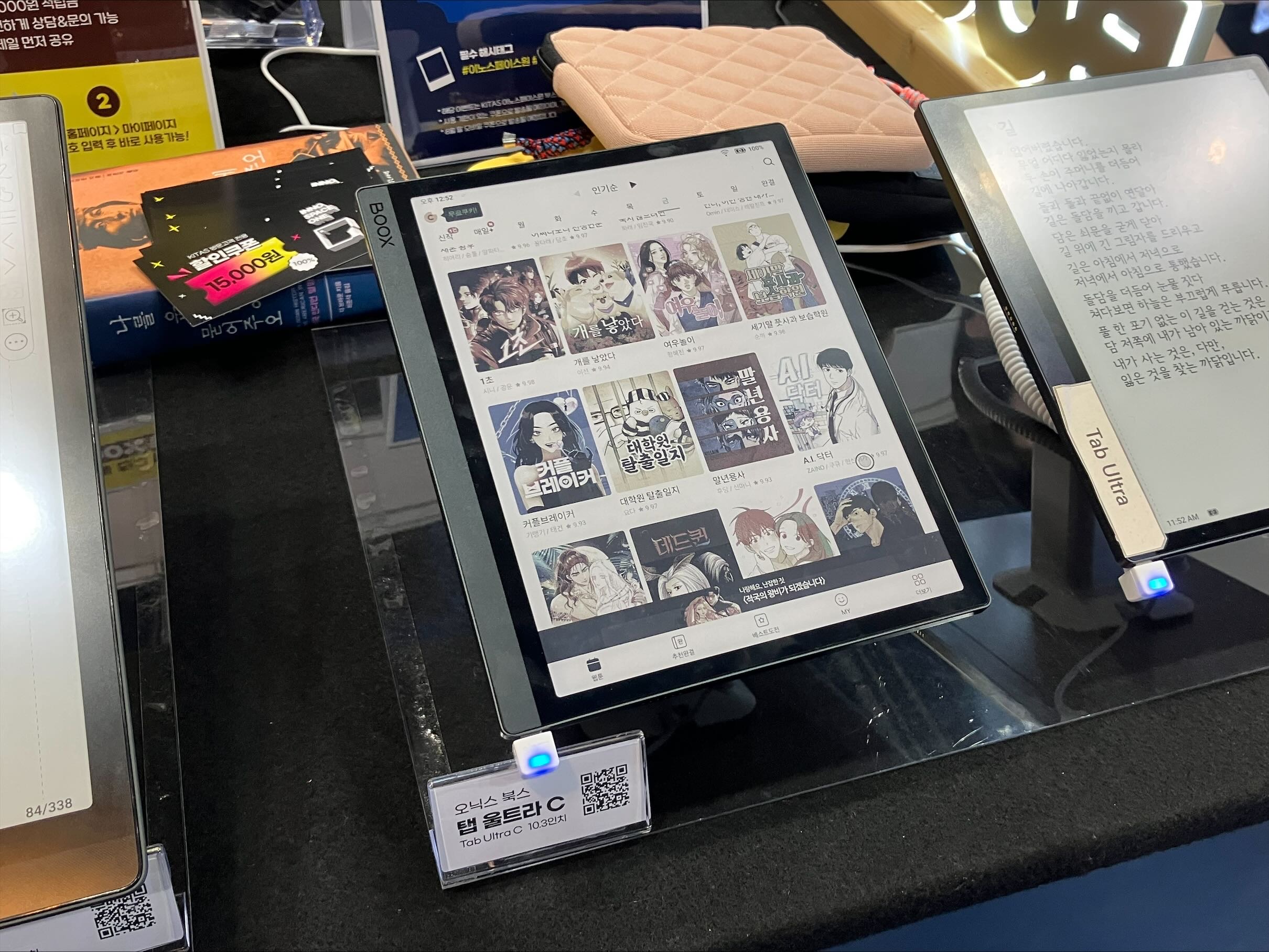그런데 이날 이 부스에서 볼 수 있었던 물건은 '오닉스 북스'뿐만이 아니었다. 지난달에 새로 출시된 6인치대의 '루나 X'를 비롯한 '루나' 제품군들의 실물도 볼 수 있었다.