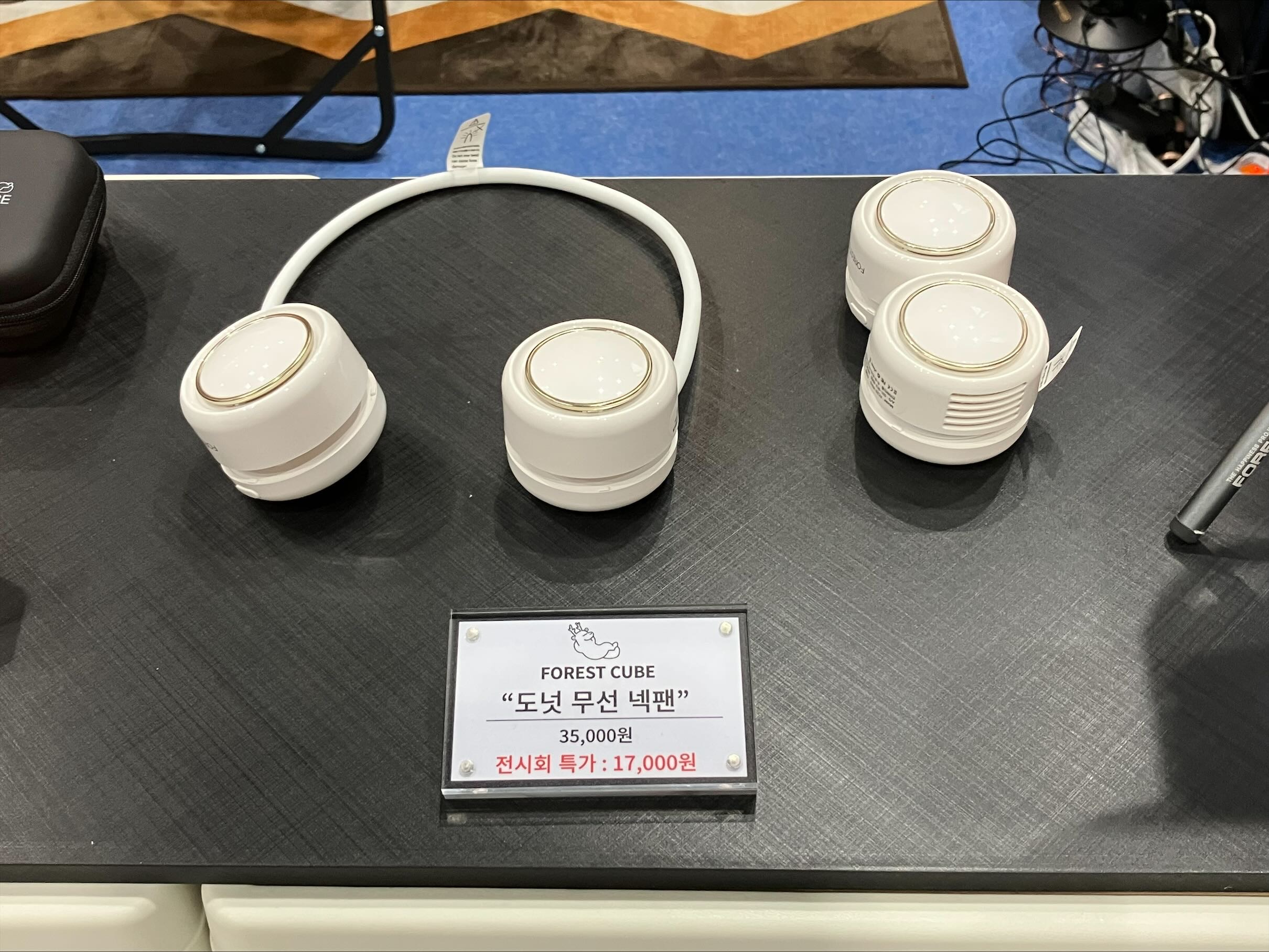 부스에 전시되어 있던 품목 중에서 가장 눈여겨봤던 것은 '도넛 무선 넥팬'이라는 제품이었다.