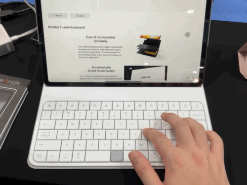모키보라는 업체의 부스에서는 '퓨전 키보드'라는 제품을 체험해 볼 수 있었다. 이 제품은 키보드와 터치패드를 한 자리에서 사용할 수 있도록 고안된 하이브리드 키보드다.