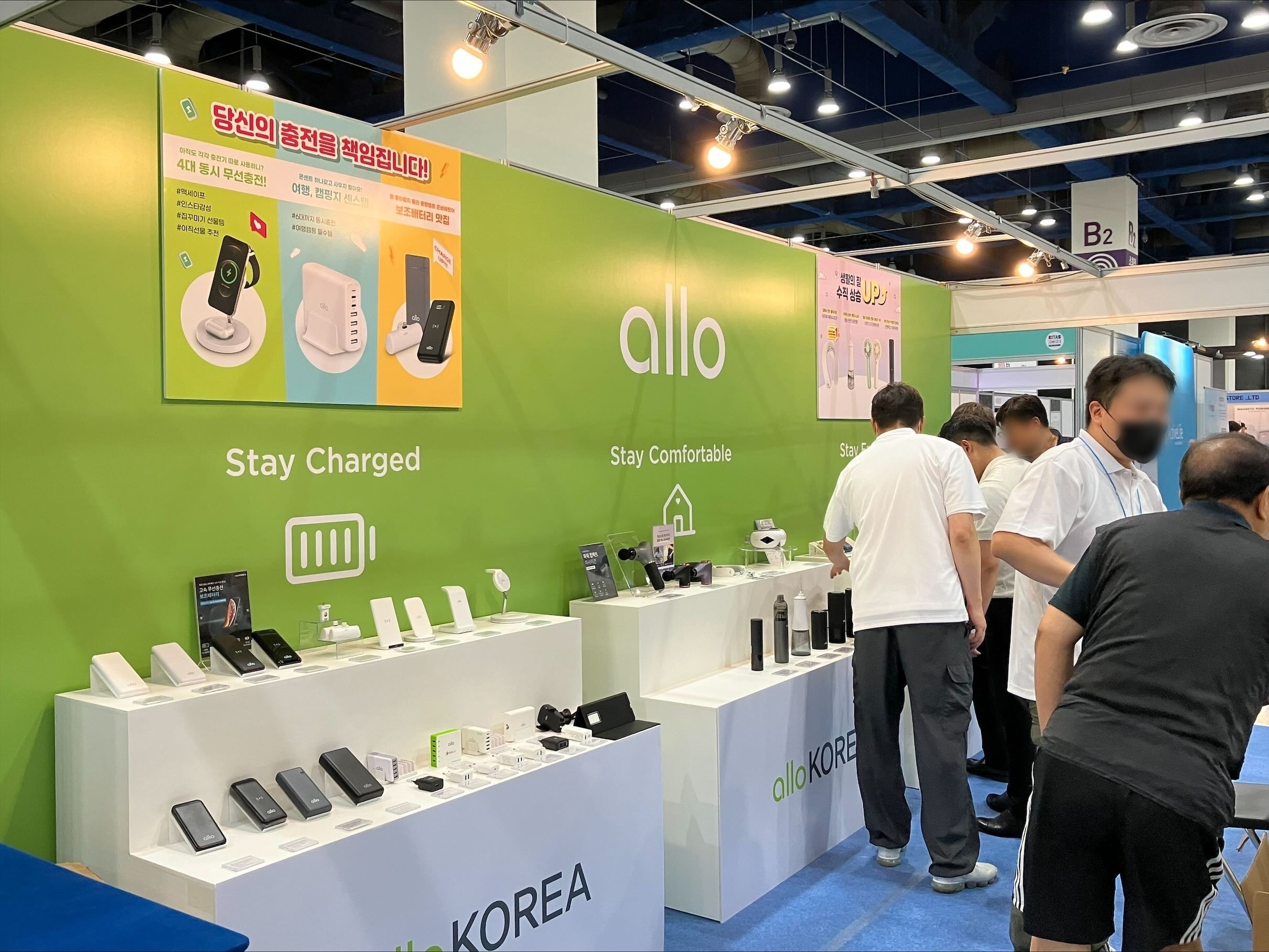 이를 증명하듯 알로코리아 부스에서는 현재 시판되고 있는 보조배터리와 충전 어댑터 상품들이 전시대 하나를 독차지하고 있는 모습을 볼 수 있었다.
