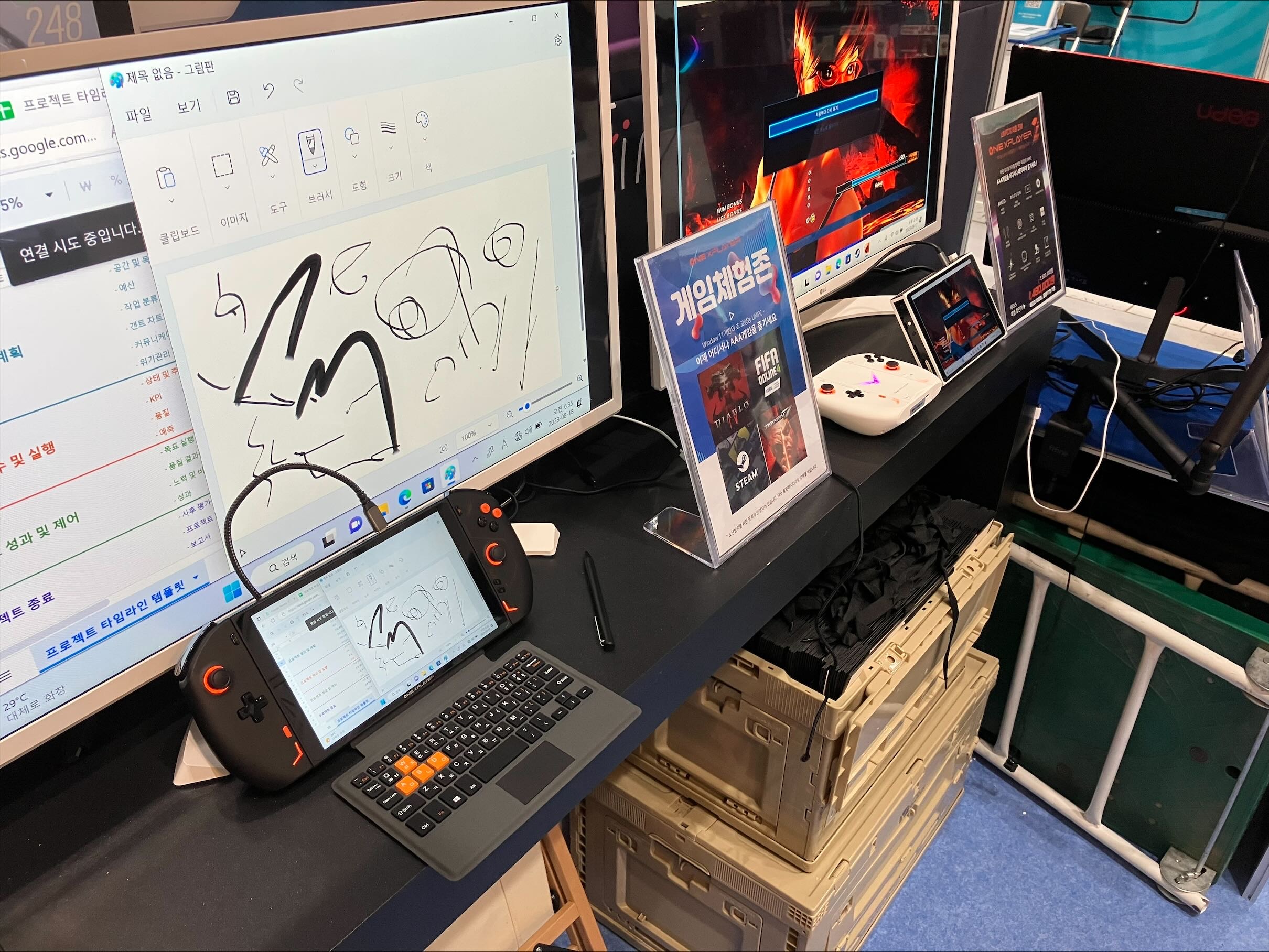 이곳 부스에서 별도의 전용 전시공간까지 마련되었을 정도로 꽤 비중 있게 다루어지고 있던 제품은 '원엑스 플레이어 2 메타덱'이라는 게이밍 UMPC였다.