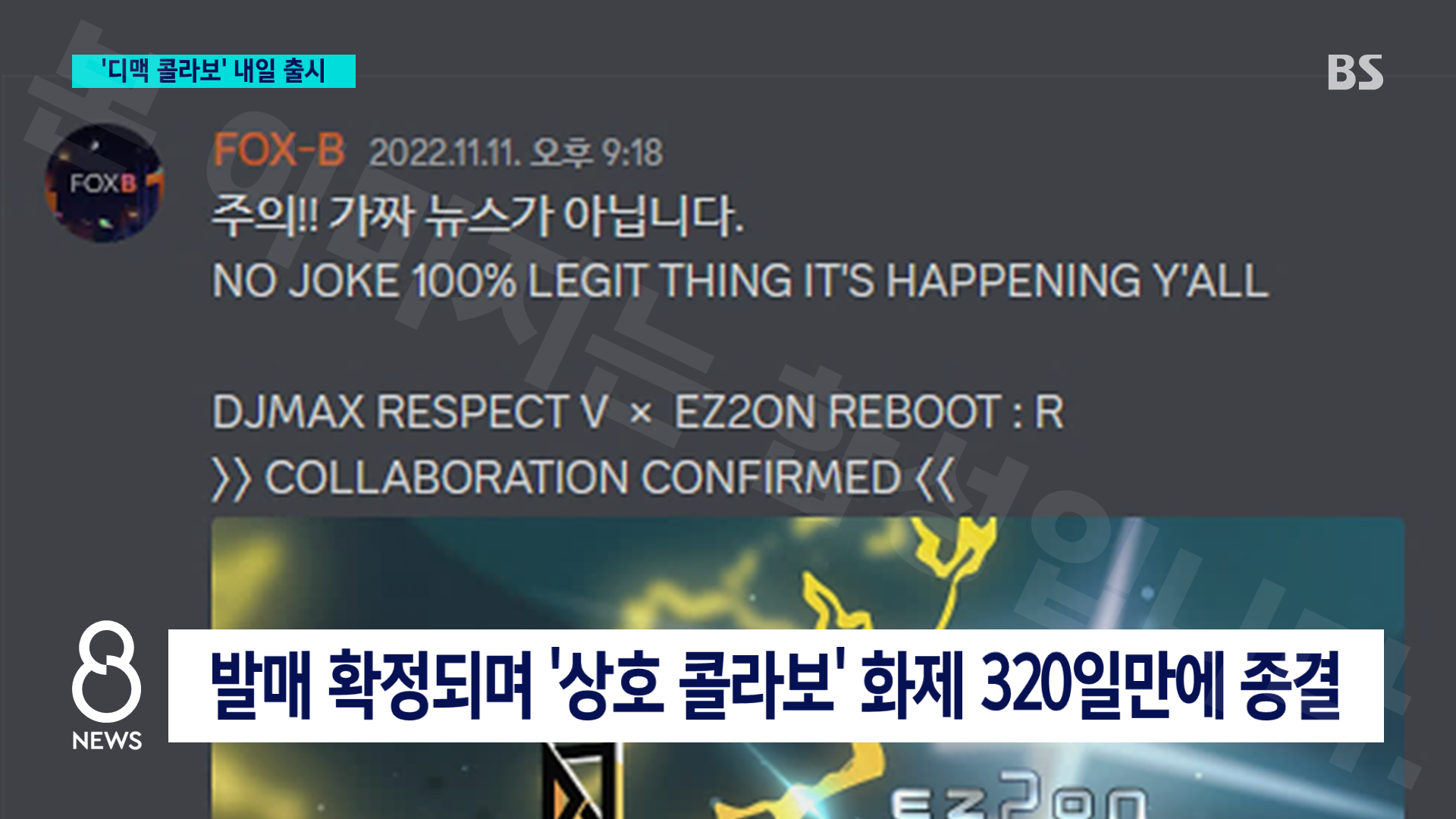 〈이지투온 리부트:R〉의 '디제이맥스' 콜라보레이션 DLC 발매일이 9월 27일로 확정되면서, 작년 11월부터 대외적으로 전개되어 왔던 두 게임 간의 '상호 콜라보레이션' 사업이 320일만에 마무리가 되었습니다.