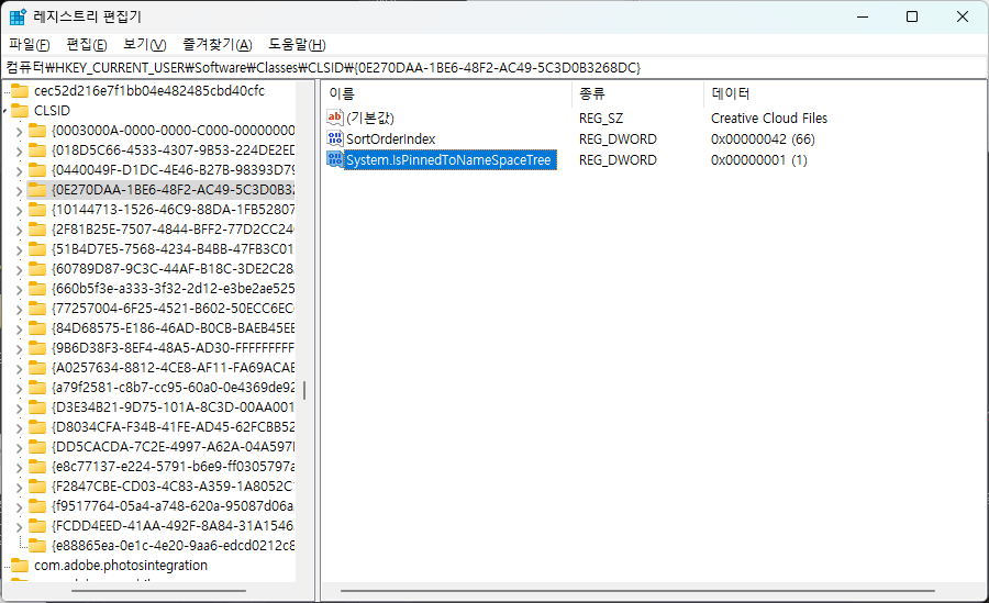 문자열 값으로 'Creative Cloud Files'라는 제목이 명기되어 있기 때문에 이걸로 구분해서 찾아도 된다.