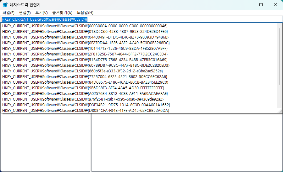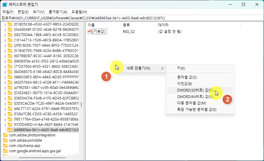 1. CLSID\ 경로에 키 {e88865ea-0e1c-4e20-9aa6-edcd0212c87c}를 새로 만든다.