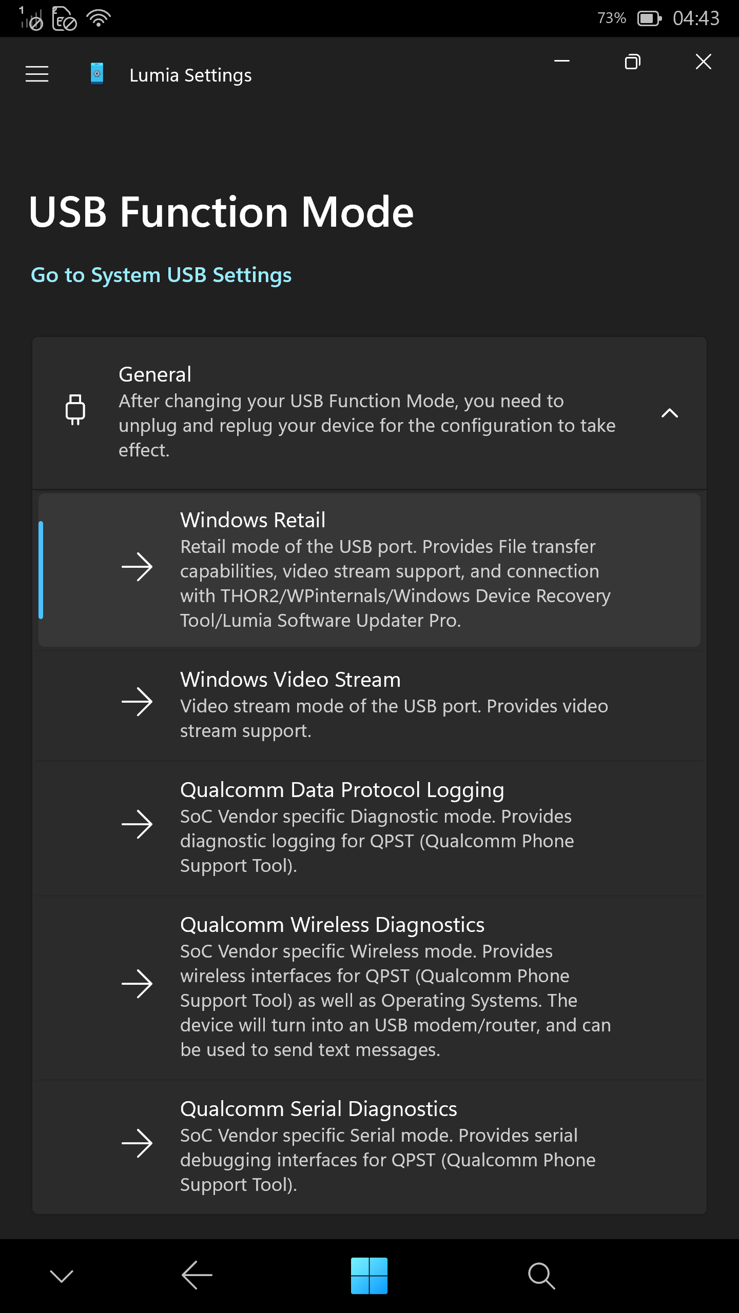 2. 루미아폰이 재부팅되면서 Mass Storage Mode로 진입하고 이 화면이 나온다.