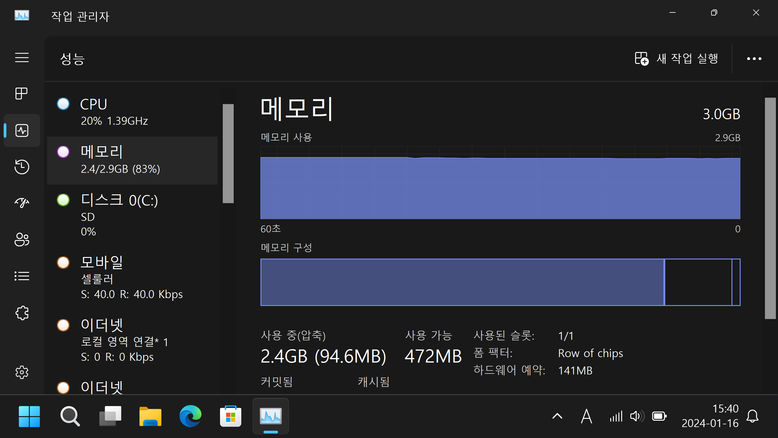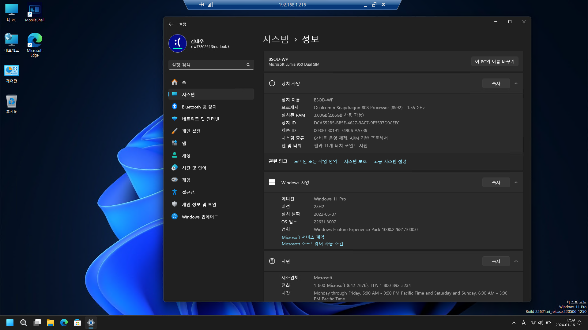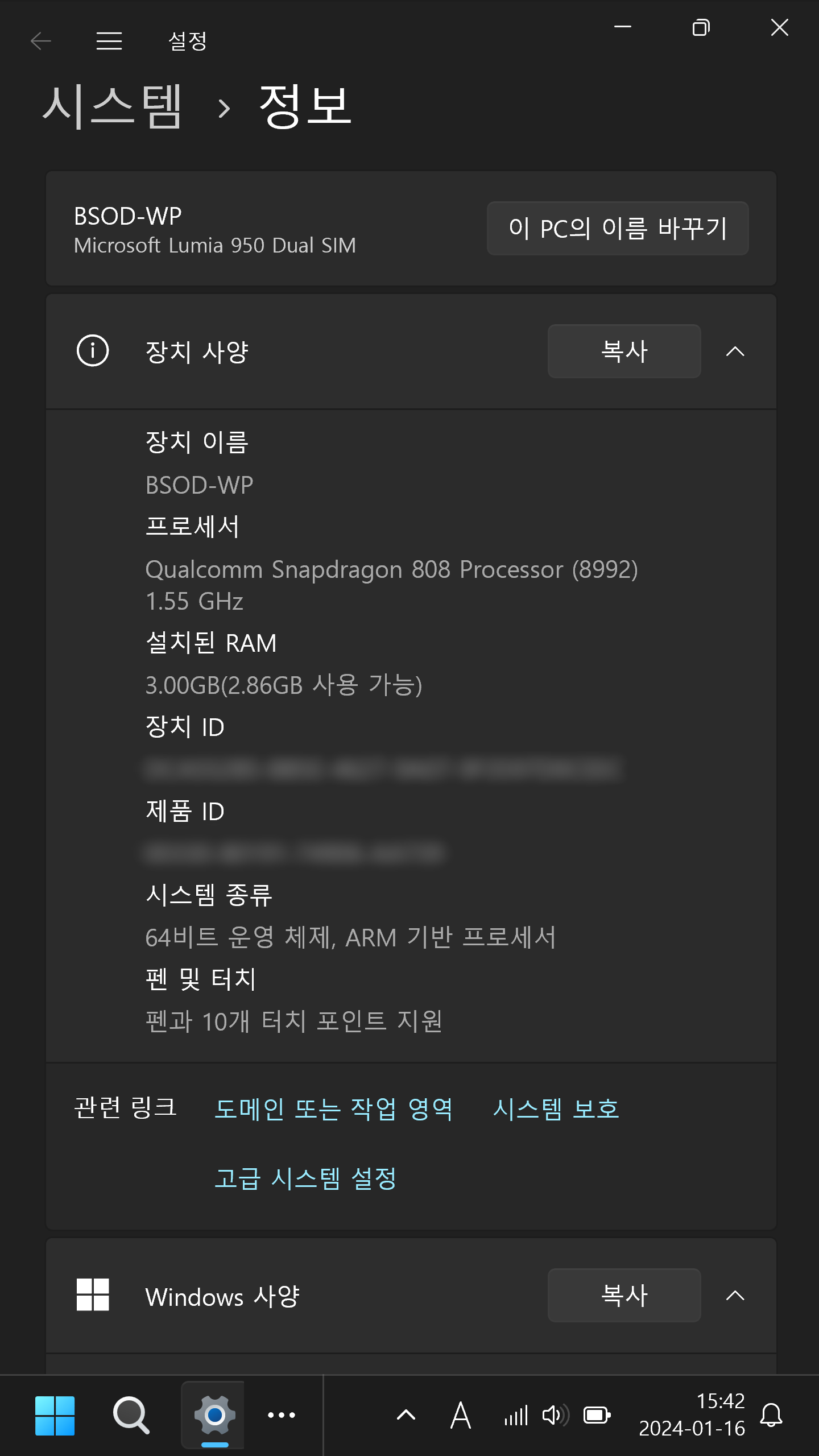 루미아 950의 하드웨어 사양을 고려하면 여기에 윈도우 11을 올려서 쓰는 건 확실히 '차력쇼'에 가깝다.