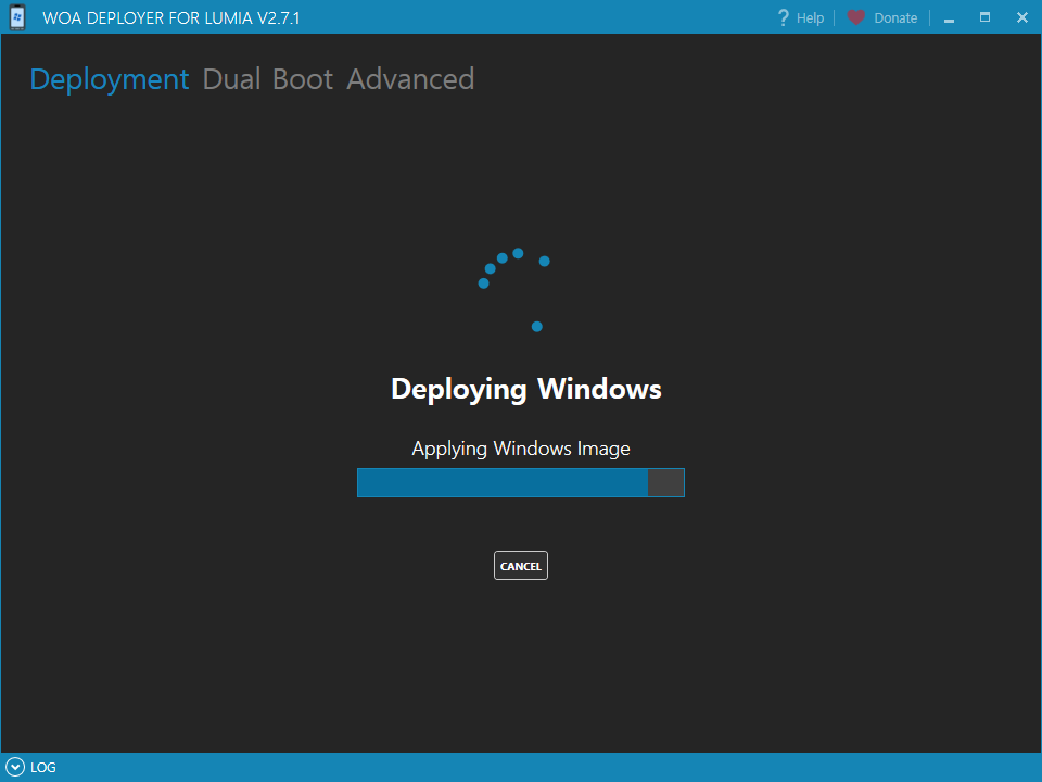 6. 이후 루미아폰에 윈도우 설치 이미지를 배포하는 과정이 자동으로 진행된다.
