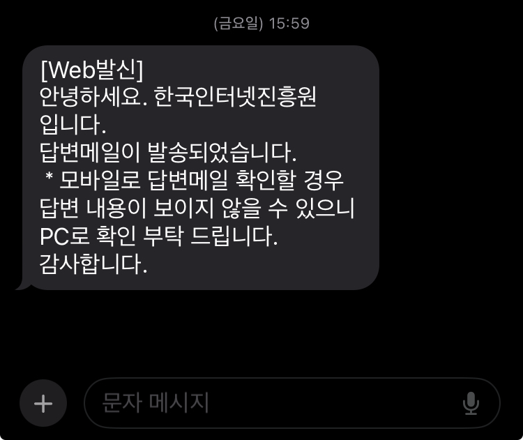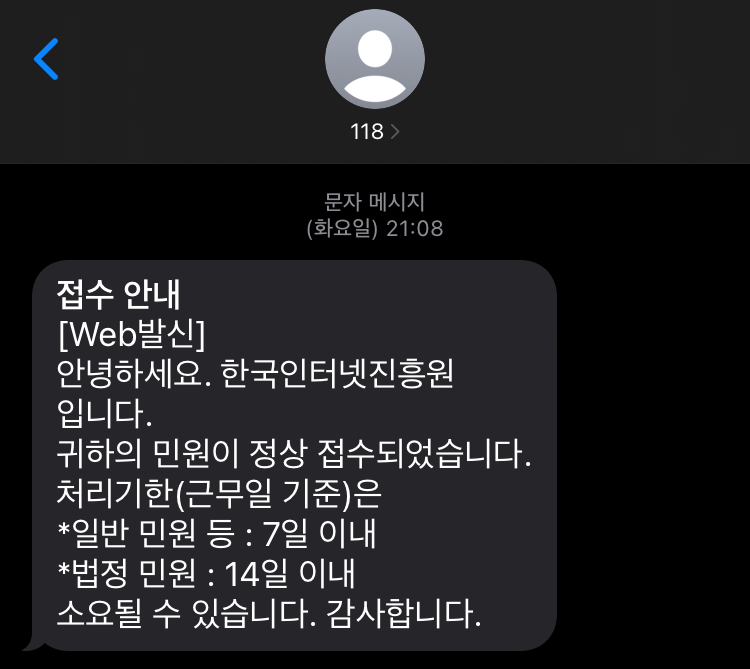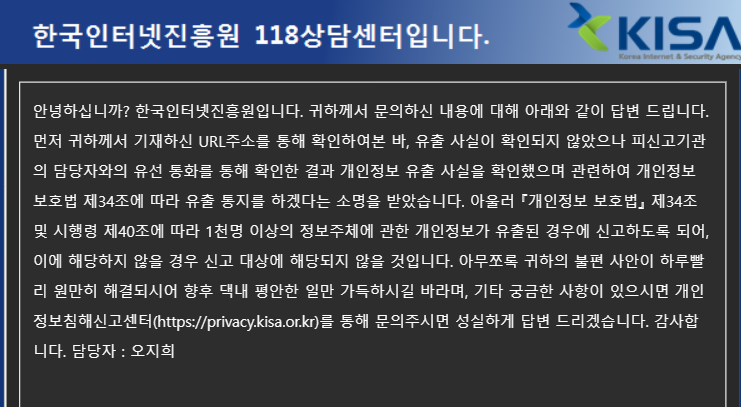필자도 한번 같은 날 KISA 측에 민원을 넣어봤는데 3일 만에 결과를 통지받았다.