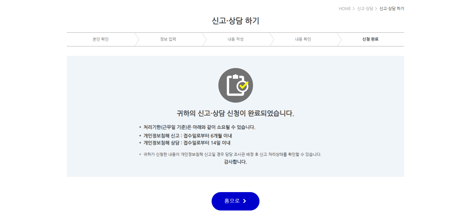 그러므로 웬만하면 해당 기관의 개인정보 보호책임자에게 우선적으로 침해사실을 신고하는 편이 좋다. 원래 이런 일에 책임을 지라고 있는 직위이기 때문에.