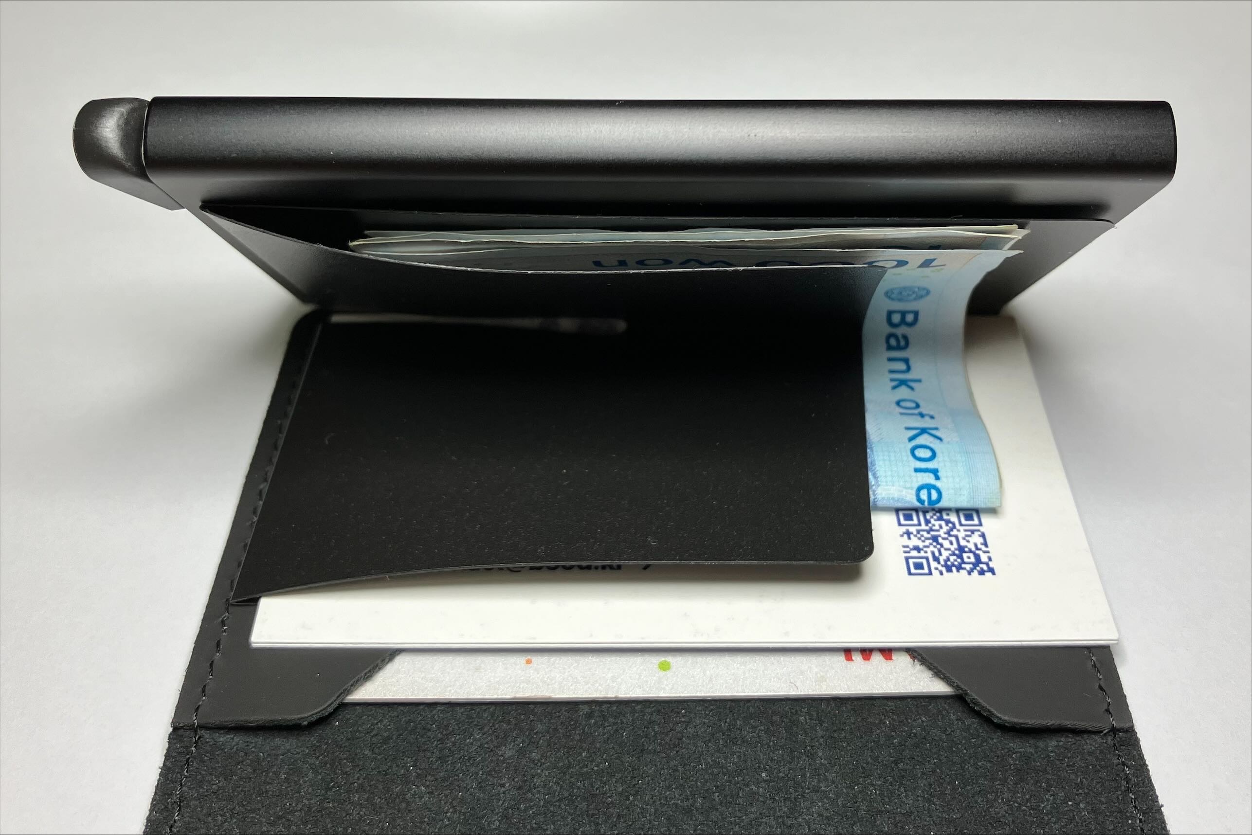 다만 머니클립의 수용량은 그렇게 높지는 않은 편으로, 허용된 두께 안에서는 내용물 3~4장 정도가 마지노선이다.