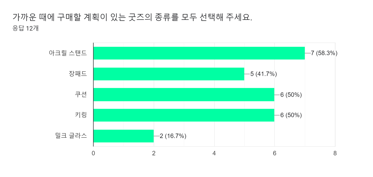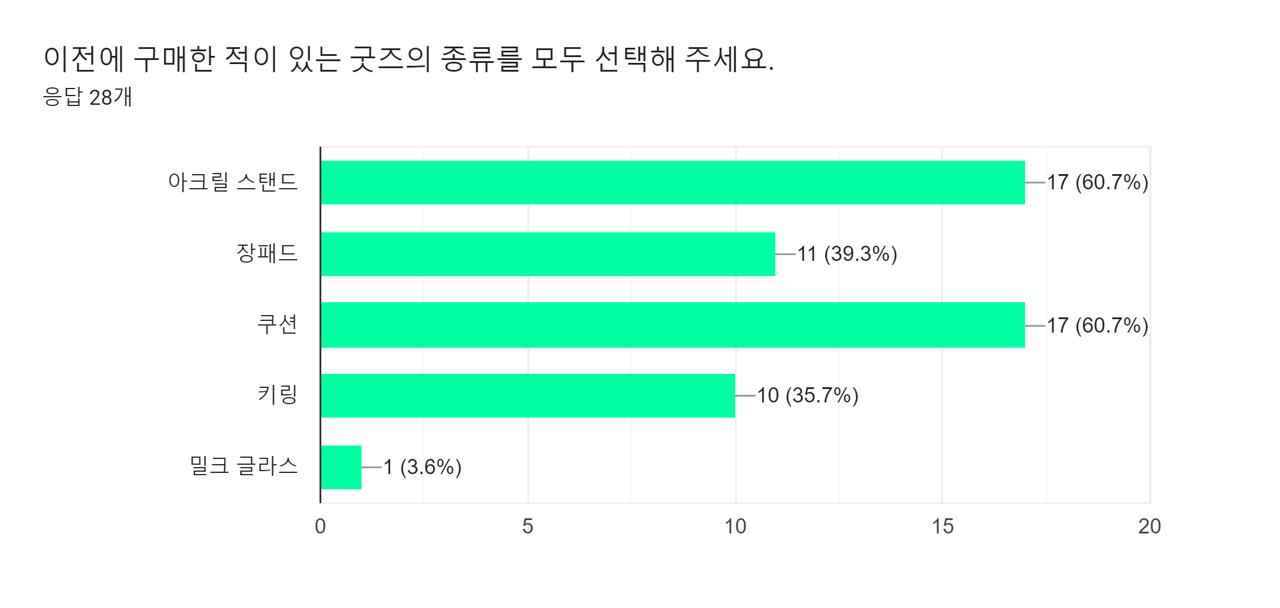 아크릴 스탠드와 쿠션류가 제일 높은 비중(60.7%) 차지