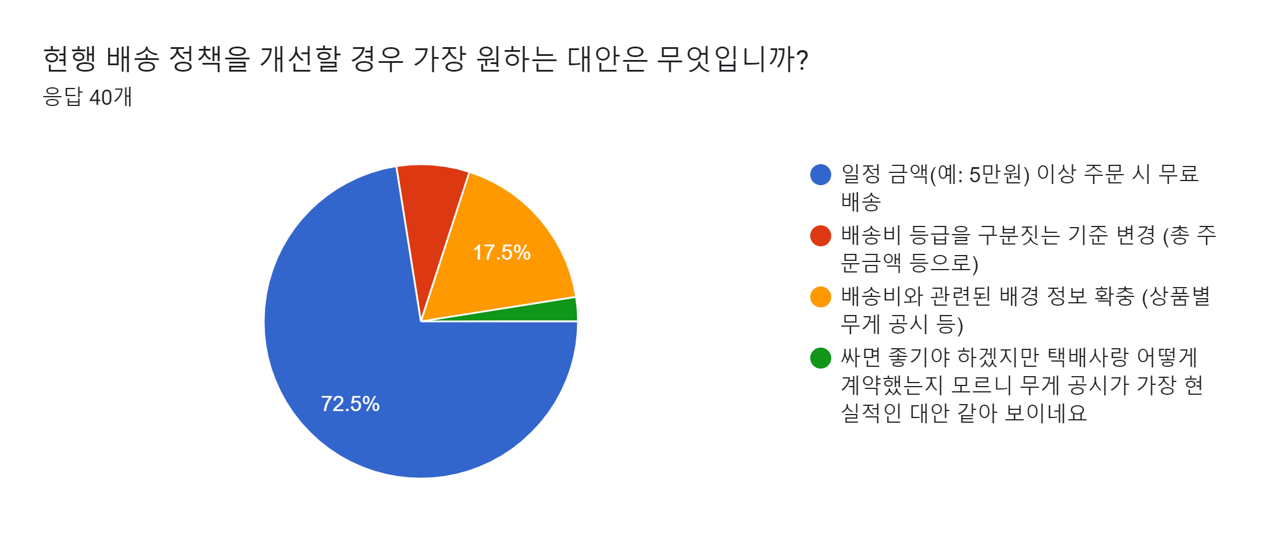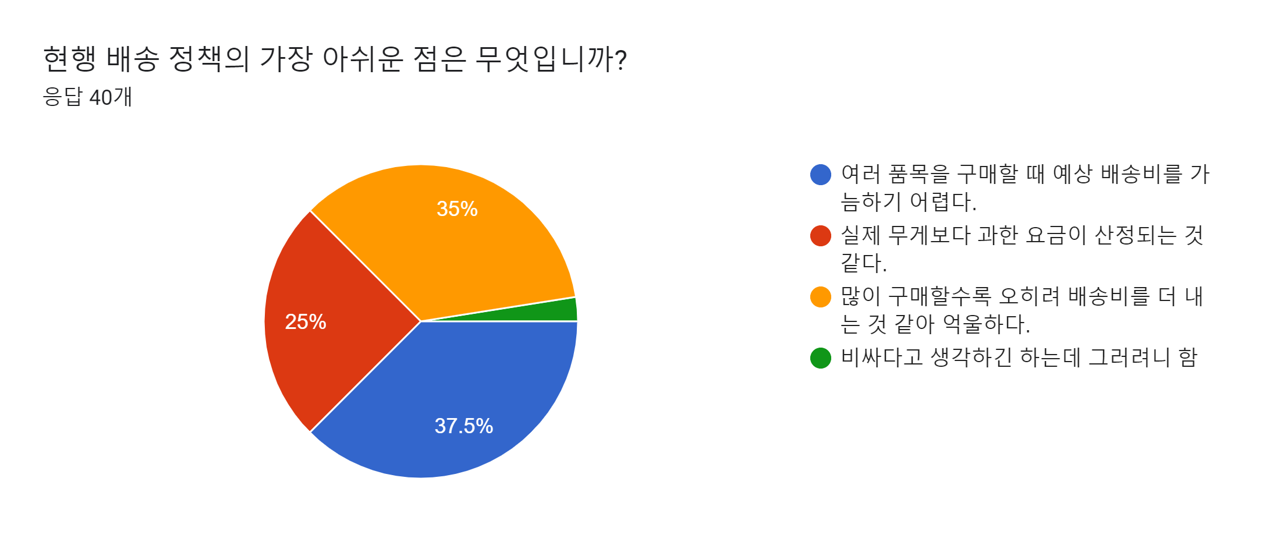- 여러 품목을 구매할 때 예상 배송비를 가늠하기 어렵다 — 37.5%