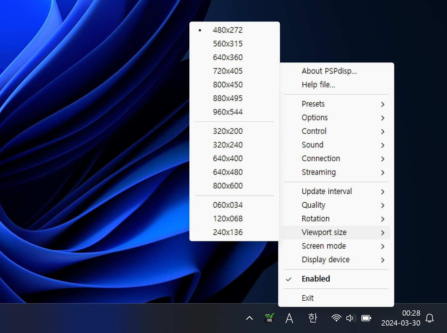 다만 PSP의 화면 해상도는 480×272이기 때문에, PC에서 HD 이상의 해상도를 사용할 경우 작은 크기의 텍스트는 읽기 힘들어진다는 점을 감안해야 한다.