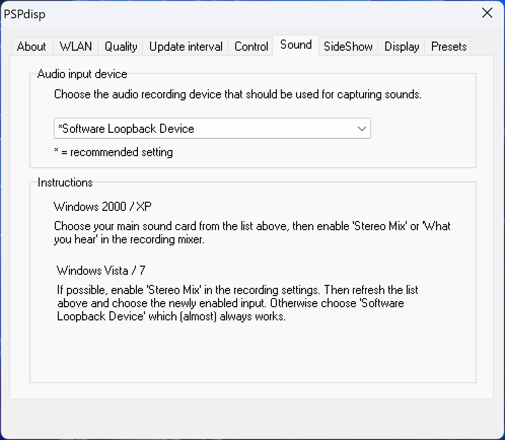 This program package enables the use of a Playstation Portable as an additional monitor in Windows. You can also remotely send keyboard and mouse commands to the PC. The newest version implements sound streaming, too. PSPdisp is compromised of four compone