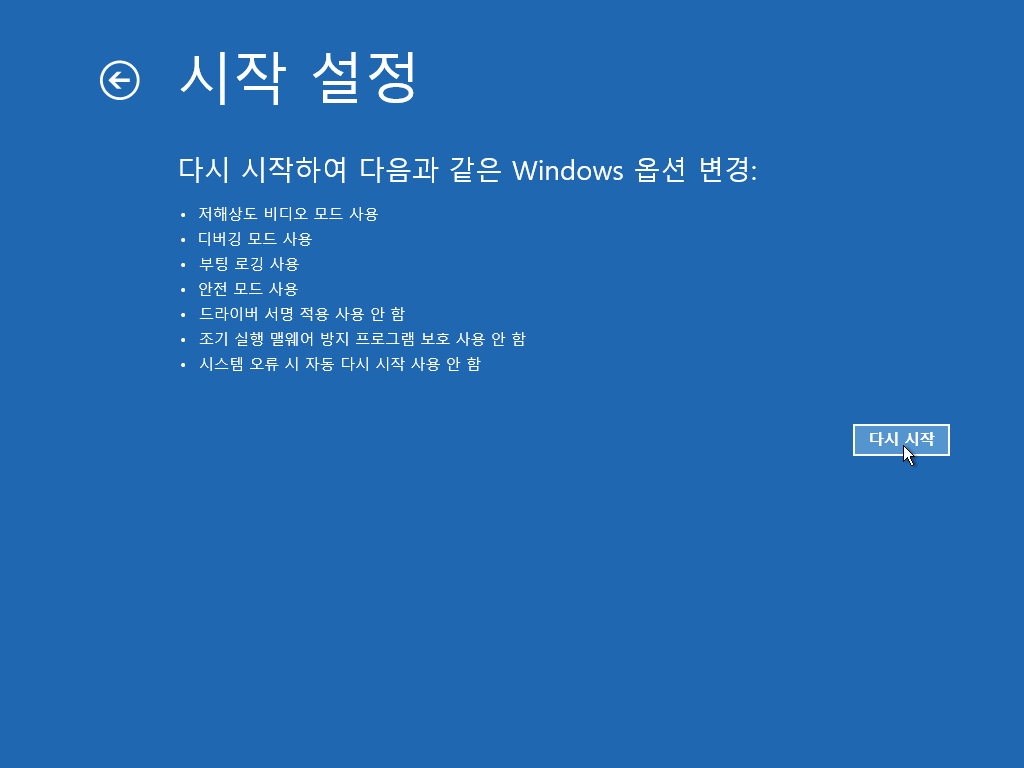 5. [다시 시작]을 클릭
