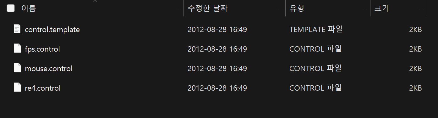 기본 제공되는 프로파일 이외에도 커스텀 프로파일을 생성할 수 있다. 프로파일 구성 설정은 아래와 같은 경로에 '.control'이라는 확장자를 가진 파일로 저장된다.
