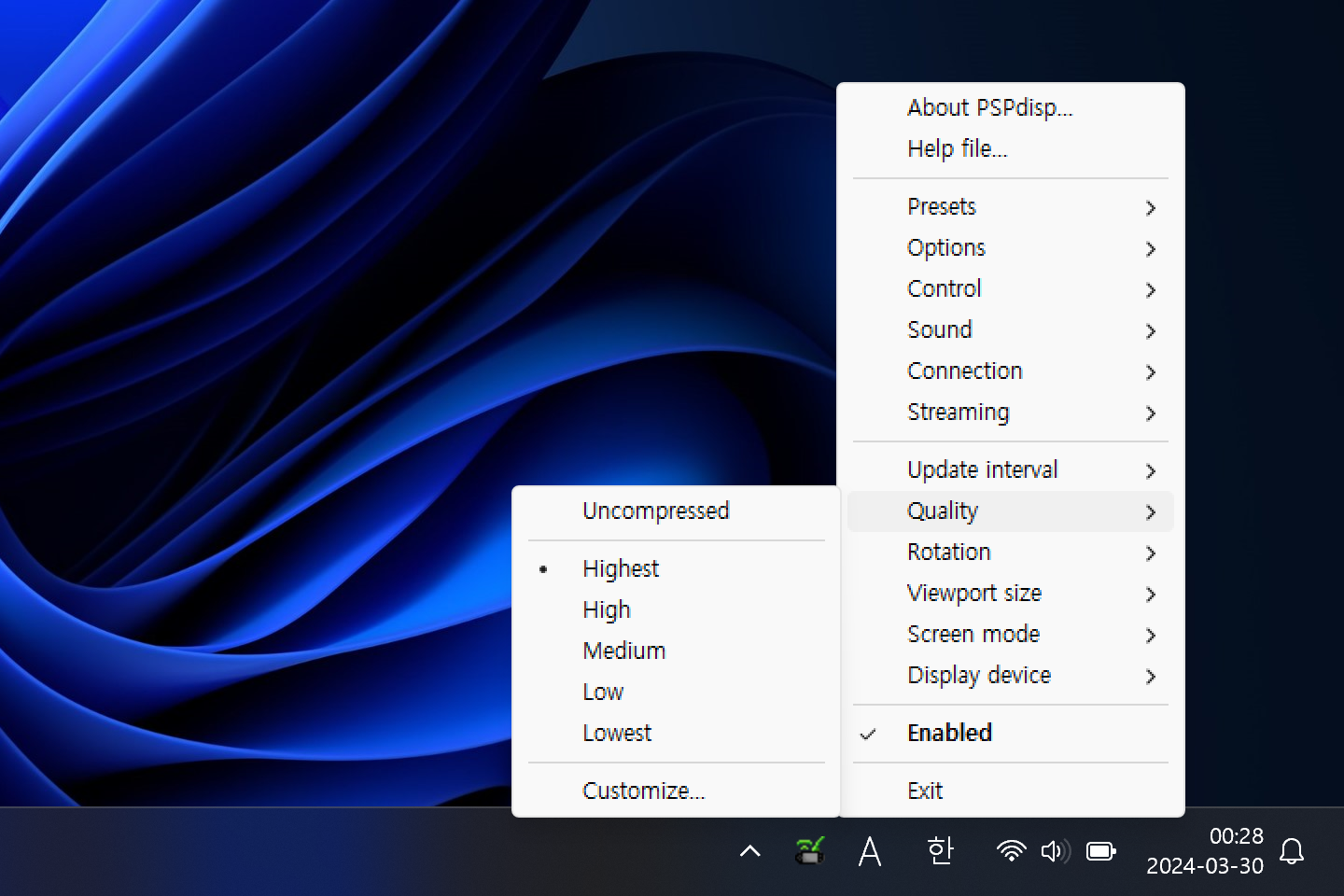 PSP에 보여지는 화면의 압축 품질을 제어하는 설정이다.