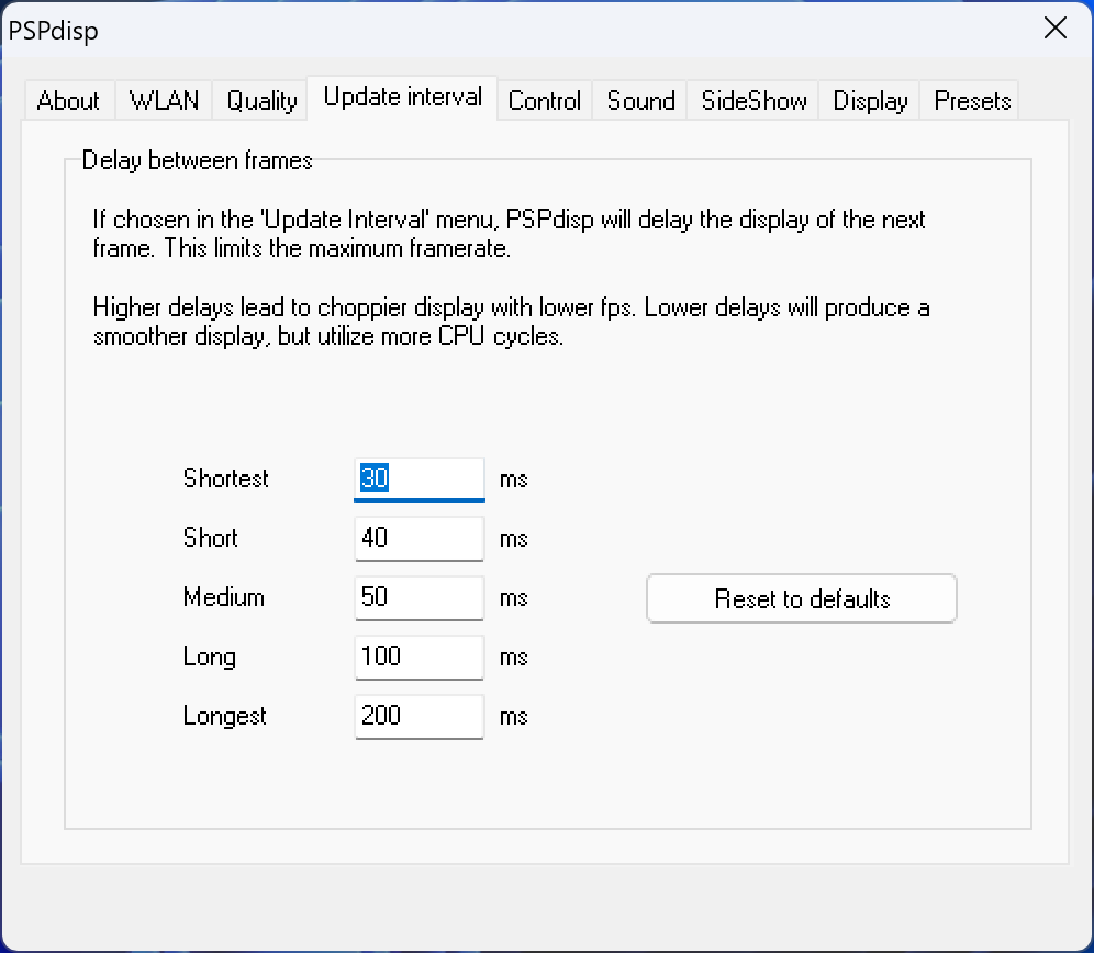 • PC의 화면 해상도와 PSPdisp의 스트리밍 옵션(Quality, Viewport size 등)을 적절히 타협하면 동영상 감상도 무리가 없을 정도로 프레임이 꽤 우수하게 뽑힌다. 물론 객관적으로 보면 30fps에 근접하는 수준.