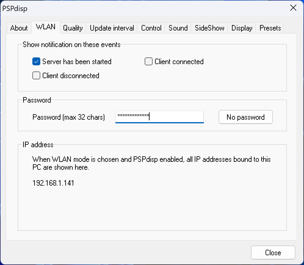 This program package enables the use of a Playstation Portable as an additional monitor in Windows. You can also remotely send keyboard and mouse commands to the PC. The newest version implements sound streaming, too. PSPdisp is compromised of four compone