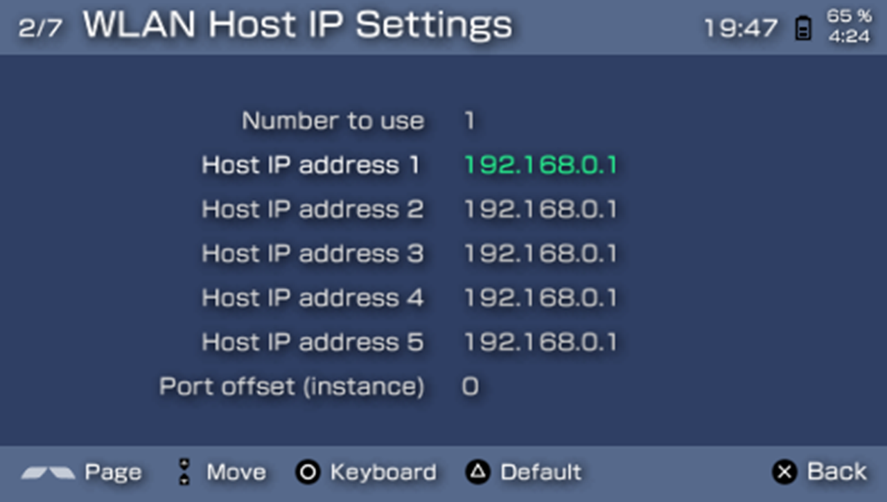 2. [R] 키를 눌러 2번 페이지로 들어간 다음 Host IP address를 등록한다. 조금 전에 토스트 알림에서 본 IP 주소를 그대로 입력해 주면 된다.