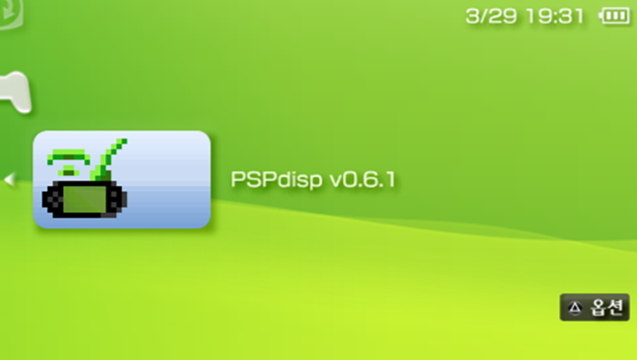 3. PSP의 메인 메뉴에서 [게임] - [Memory Stick™] 섹션에 들어가 'pspdisp v0.6.1' 실행